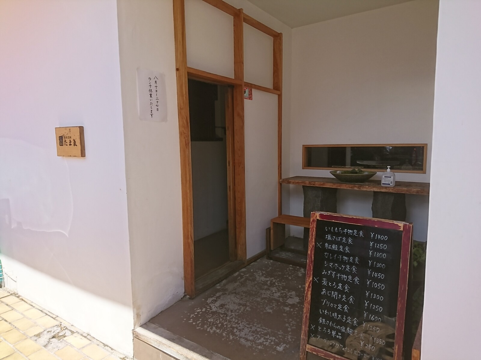 この日は、市役所近くにある居酒屋でランチ。お店の名前は「たま氣」。夜には、コース料理のみを予約客にだけ出すというスタイルのお店だけど、このお店のランチがとても素敵だっていう話は、ずっと前々から耳にしていたよ。この日、ついに入店がかなったんだ。