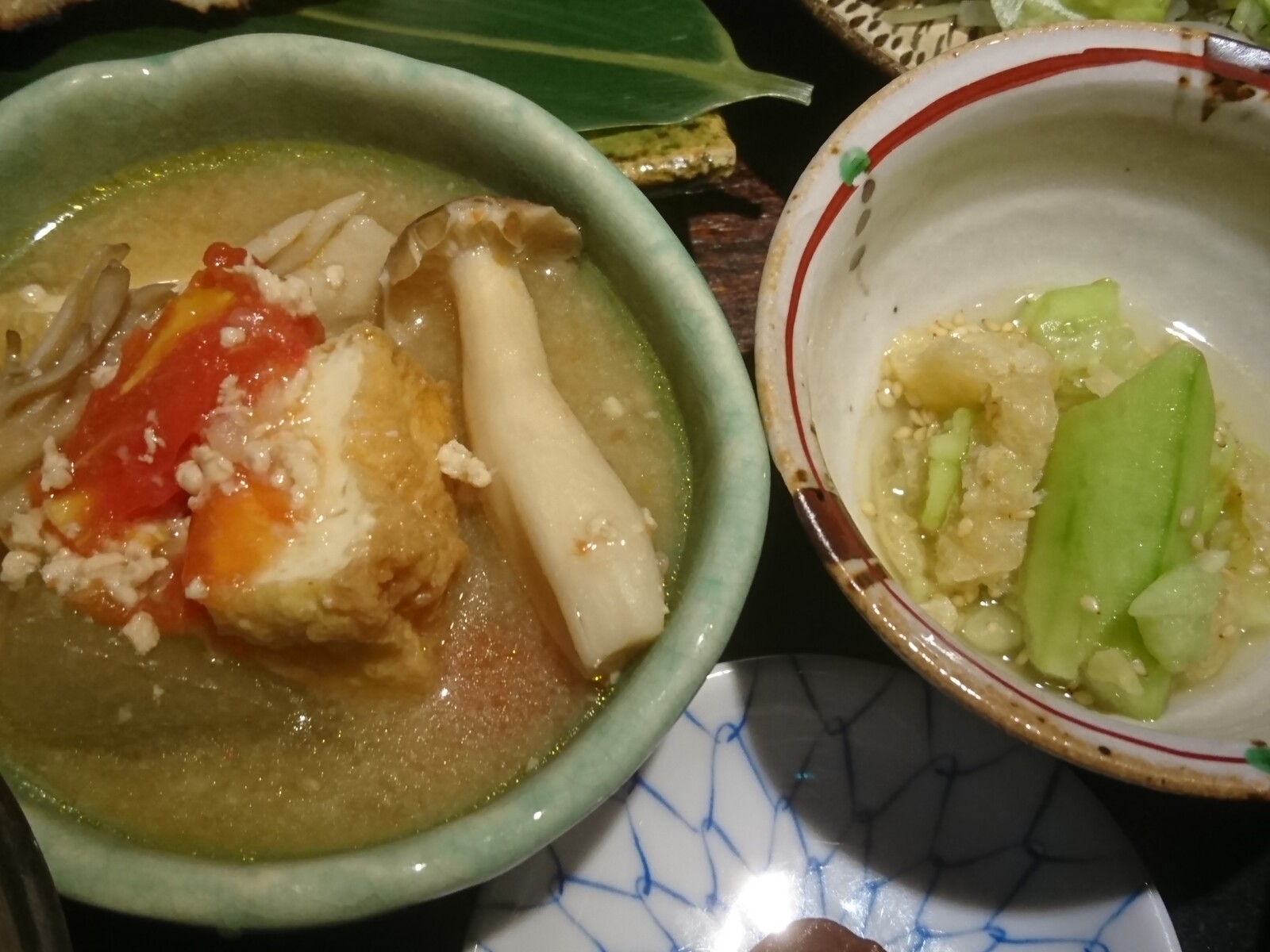 『厚揚げ、冬瓜、トマトときのこの炊き合わせ』は、冬瓜にとてもよく味が染みていて、柔らかく煮込まれていたよ。ひき肉の旨味も出汁に溶け出していて、汁を最後の一滴まで飲み干してしまうほどの逸品だったな。ホントに、全くもって素晴らしい。