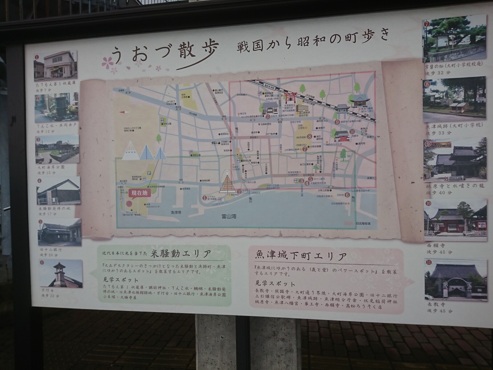 公園の一角には、「うおづ散歩」っていう観光案内マップがあったよ。