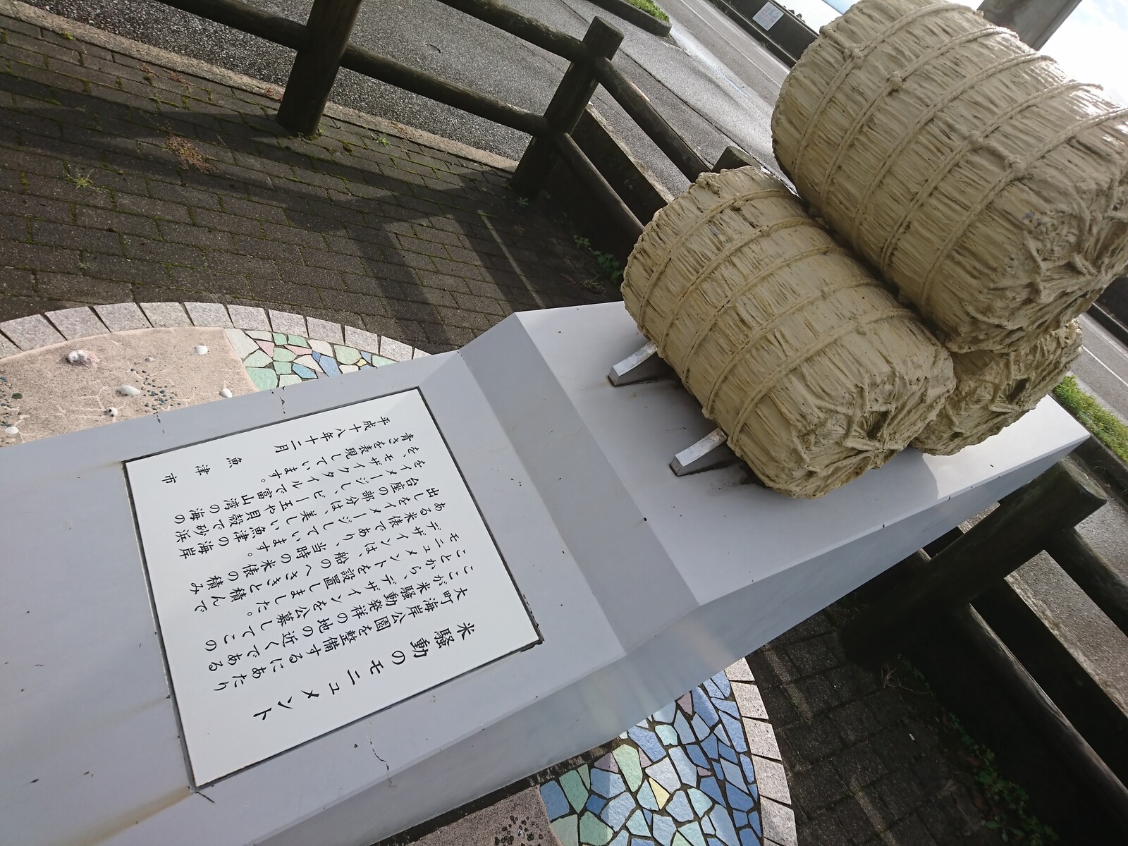 公園の名前は「大町海岸公園」というみたいだね。この辺りが、米騒動発祥の地であることから、米俵をかたどったモニュメントを設置したみたい。