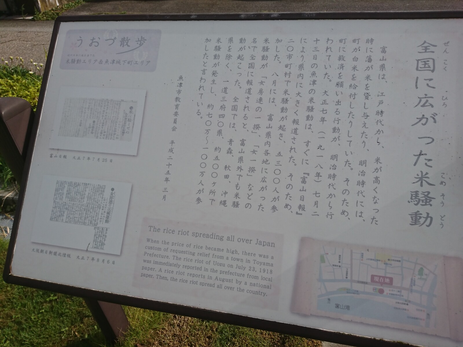 魚津といえば、大正時代の歴史的出来事「米騒動」発祥の地として知られているよね。