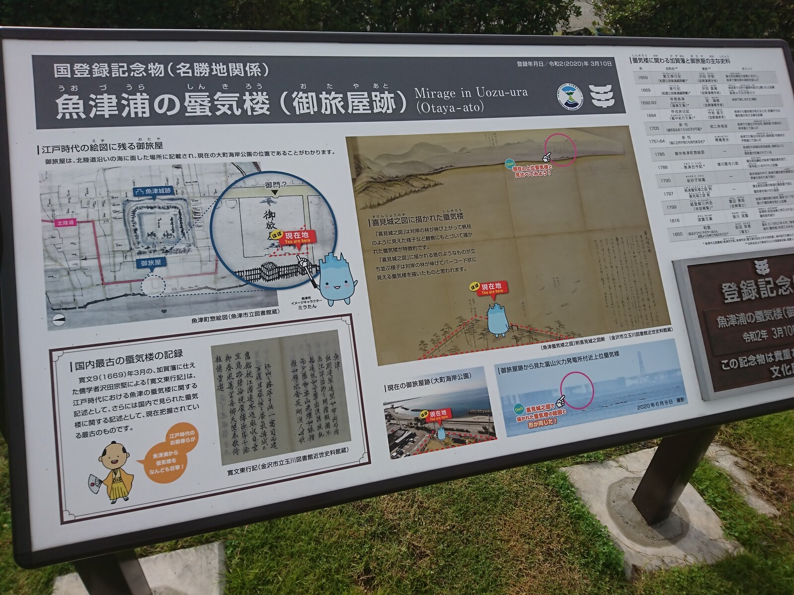 この「大町海岸公園」がある辺りは、蜃気楼がよく見える場所でもあるみたいだね。「魚津浦の蜃気楼」が国登録記念物になっているもよう。