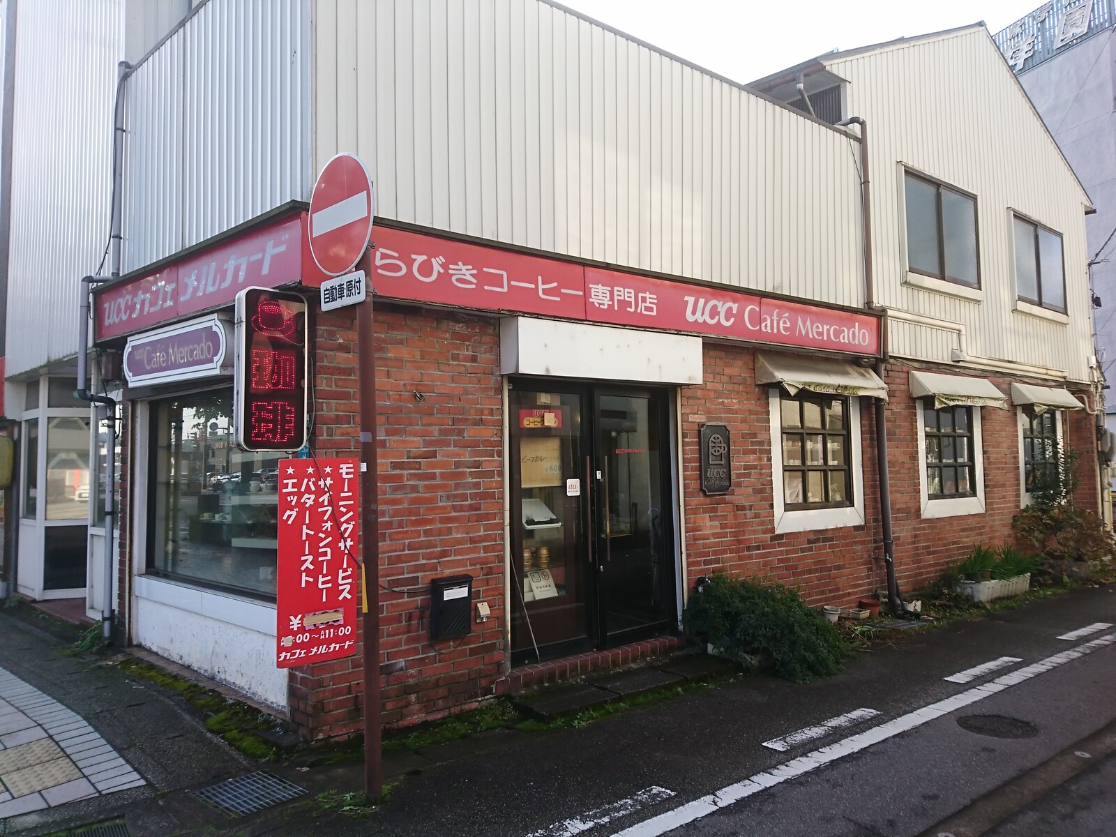 この日は、富山駅前の老舗喫茶店「UCCカフェメルカード富山駅前店」のモーニングを食べてみたよ。だいぶ以前に、この店のモーニングが素敵、っていう書きこみをもらっていたからね。
