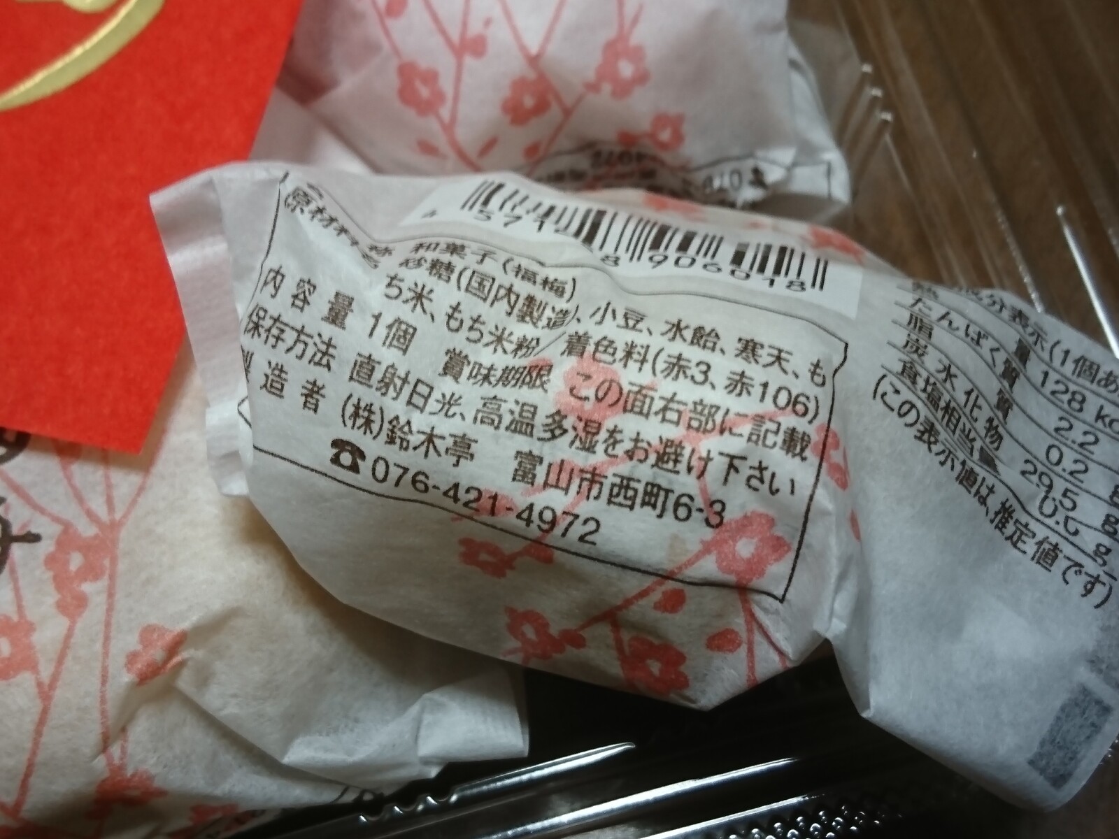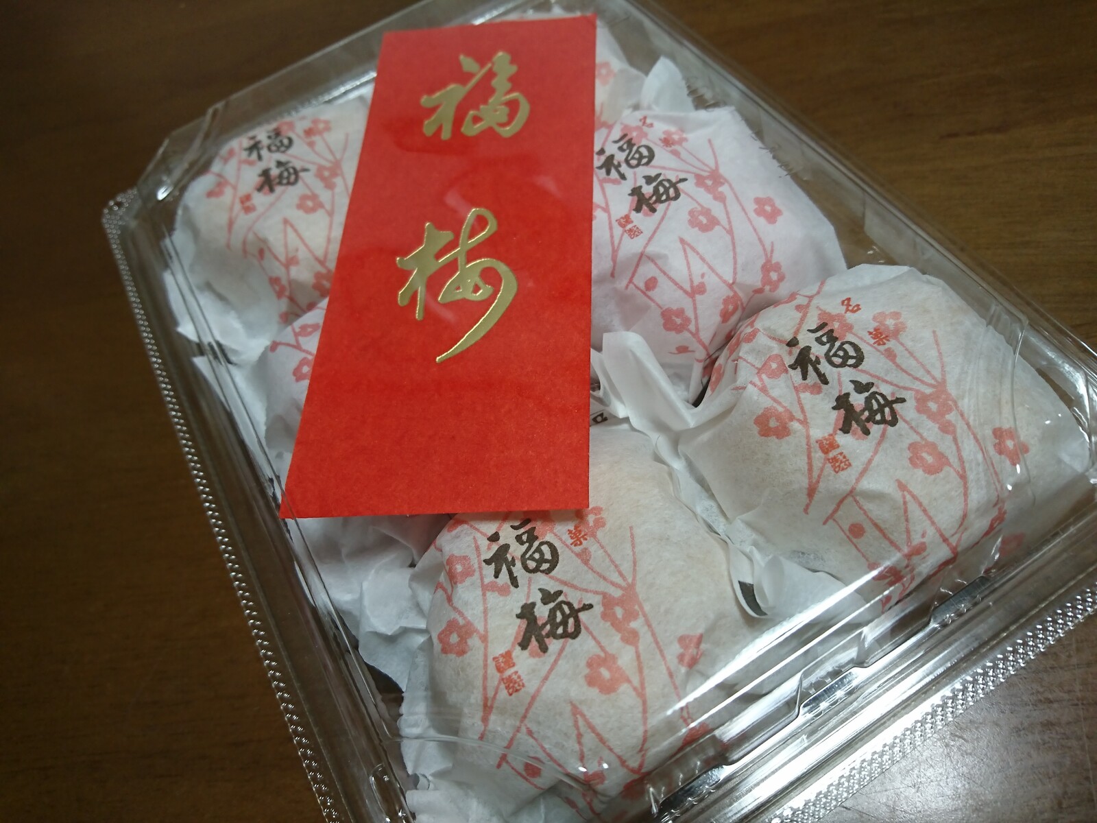 この日は、大和の初売りに出かけて、デパ地下の富山銘菓屋さんに『福梅』を売っているのを見つけたから、買ってみたよ。
