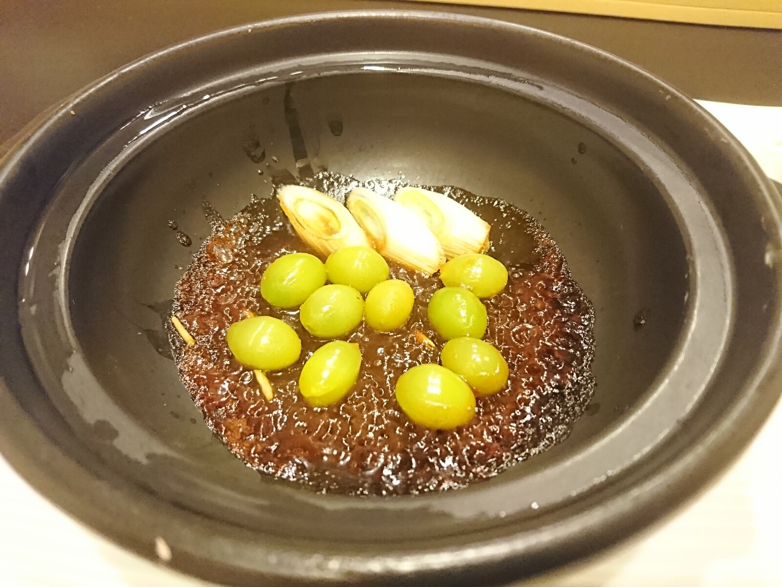 こちらは、『銀杏のみそ焼き』。赤みその上に銀杏をしきつめて焼いただけなんだけど、甘辛い赤みそと銀杏でお酒が進むのだ。これは、よい肴になると思ったよ。