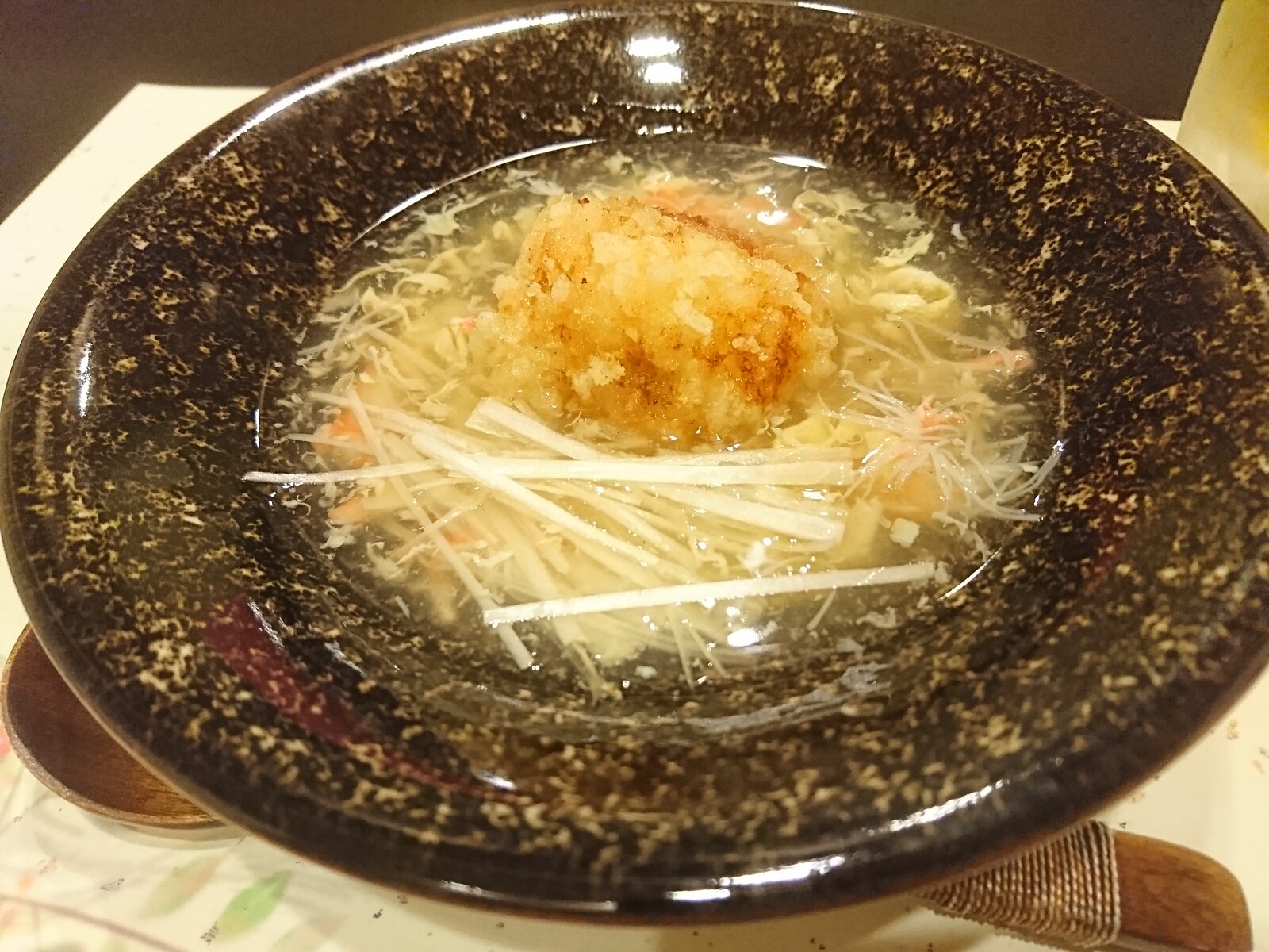 カニの身をちりばめたスープも絶品。