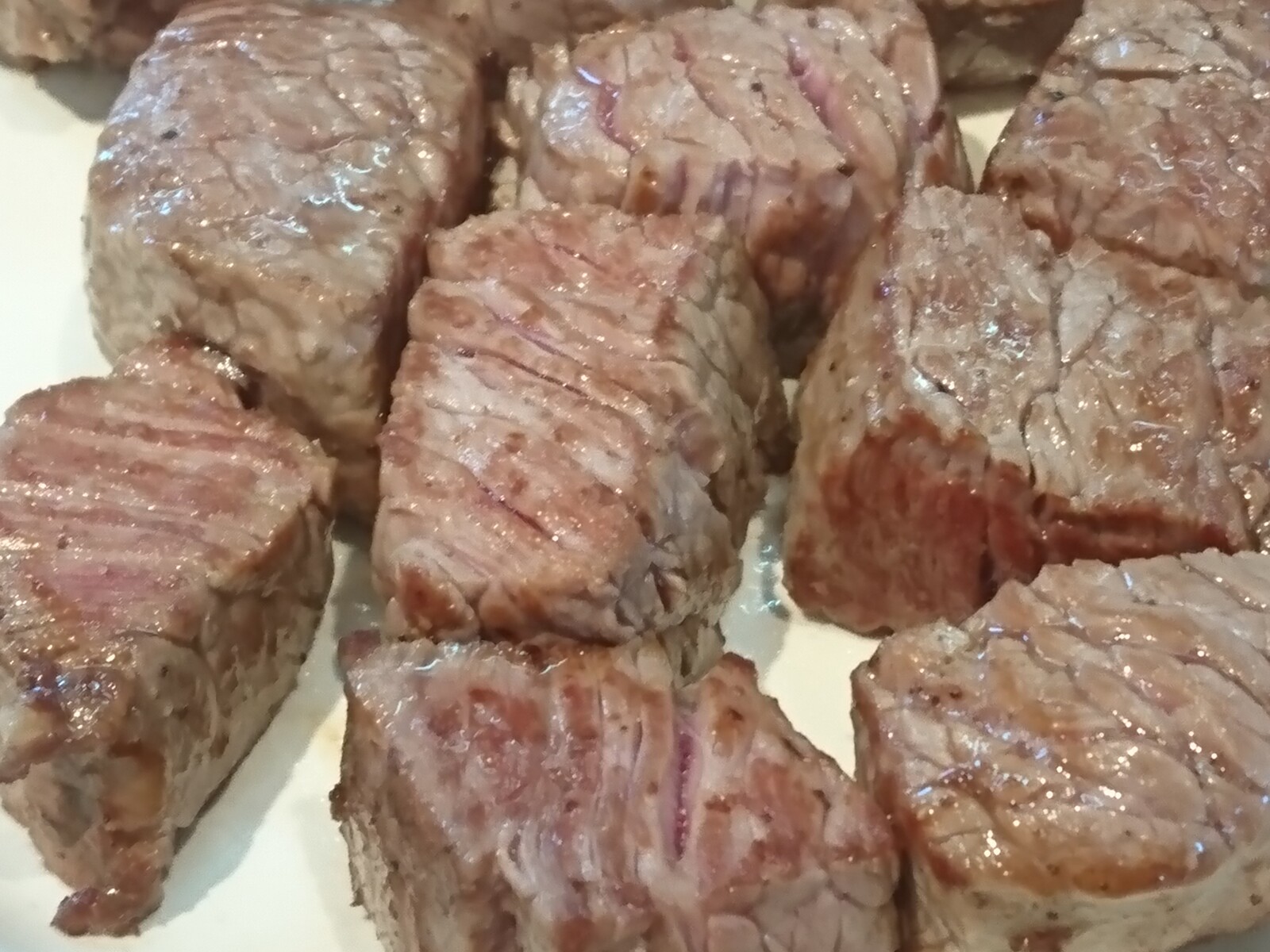 中に赤いところを残した、レア加減の焼き具合が見事だったよ。一口噛むごとに、肉の旨味があふれてきて、バラバラとほぐれていくやわらかさを楽しみながらいただいたんだ。