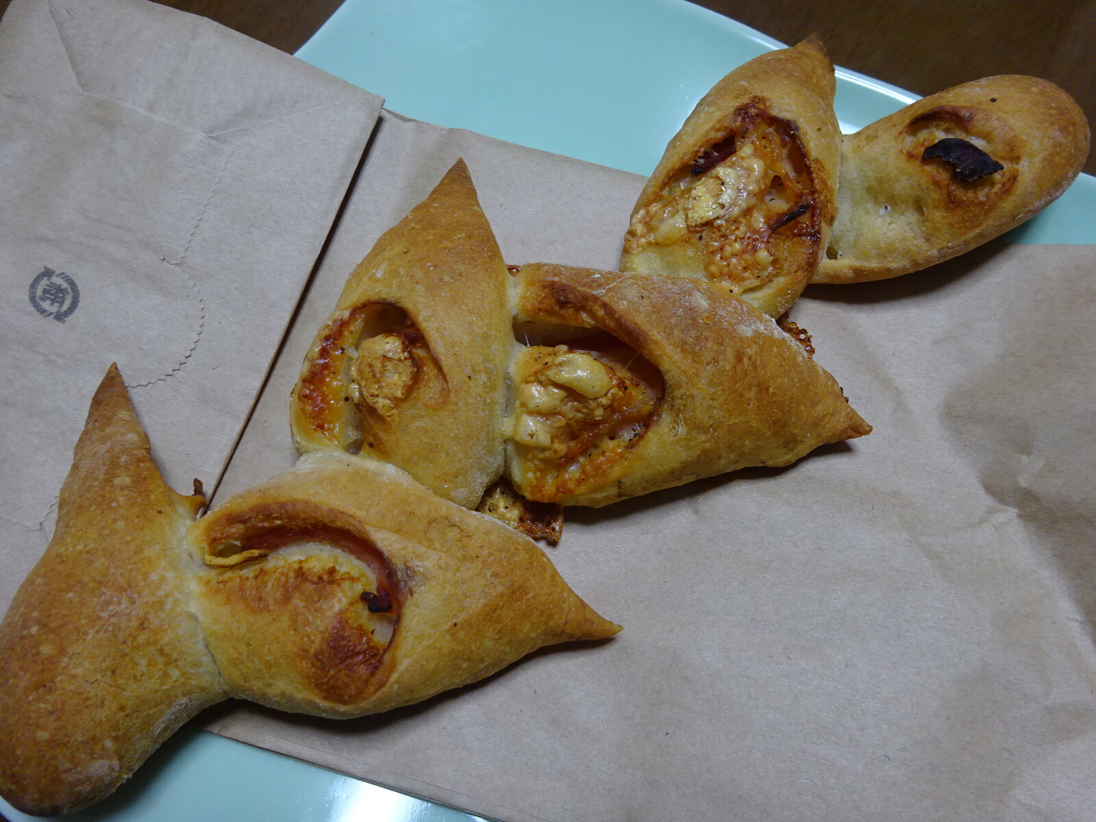 この日は、総曲輪通りの入り口「SOGAWA BASE」にあるパン屋さん「ブーランジェリードーヨー」で、パンを買い込んでみたよ。気になったのは、『ベーコンエピ』。何しろ、最初から紙の袋に入っていて、中身が見えないからね。どんなのかわからなくても、家の店を信じて買ってね、っていう主張?