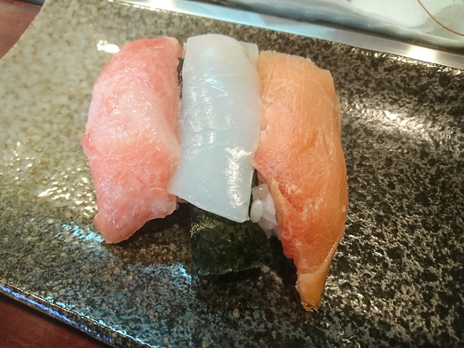 かくして登場したのがこちら。まずは、『中とろ』『いか』『さけ』の3種だよ。