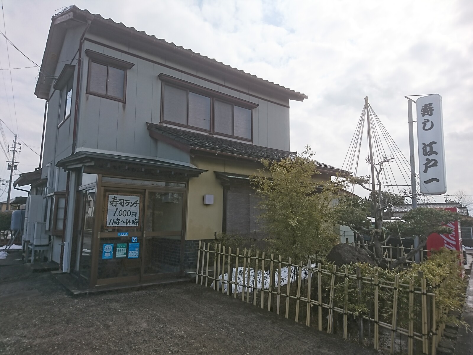 この日は、射水市東明にある寿司の名店「寿し江戸一」でランチしてみたよ。国道415号線を四方から新湊大橋に向かって車を走らせると、海老江あたりの交差点に看板が立っているのが目に入るんだ。どんな店なんだろ、って前々から気になっていたんだよね。
