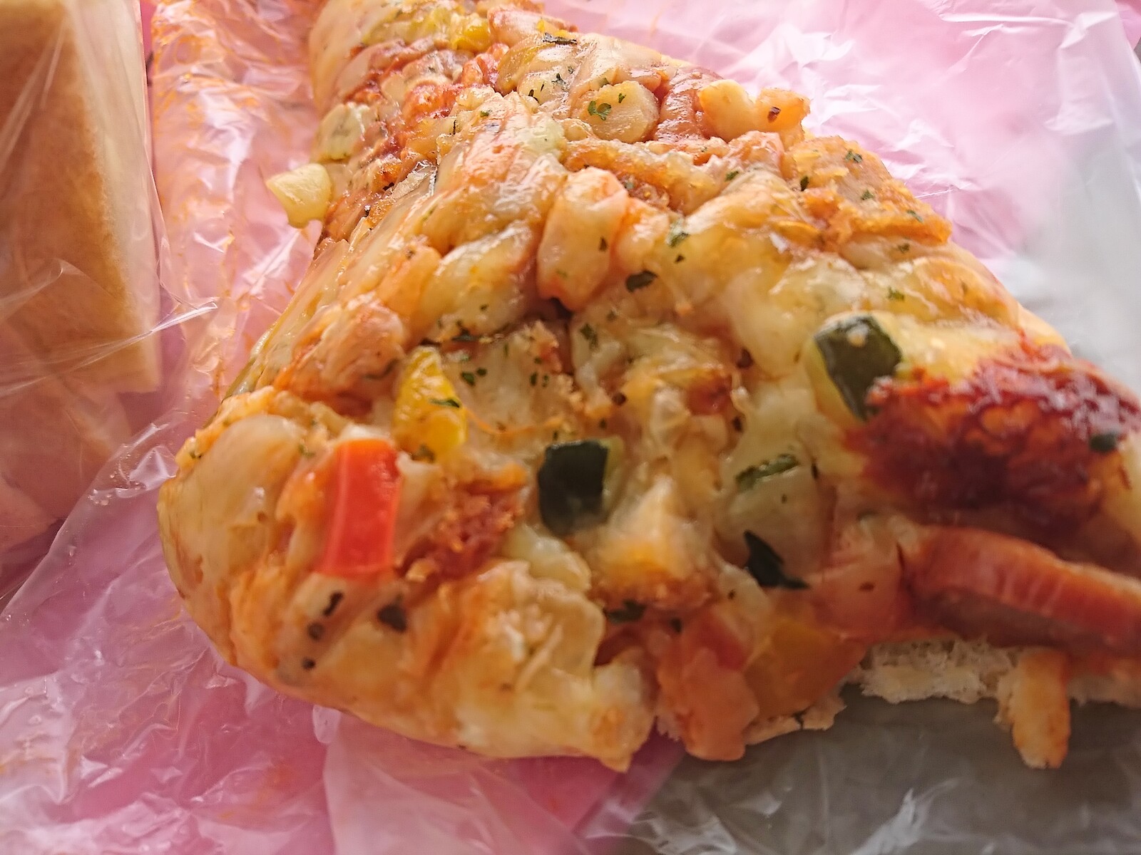 『ピザパン』もまた、その具ののり具合が秀逸。コーンとトマトとたっぷりのチーズで、ボリューム満点の見事な『ピザパン』だったよ。