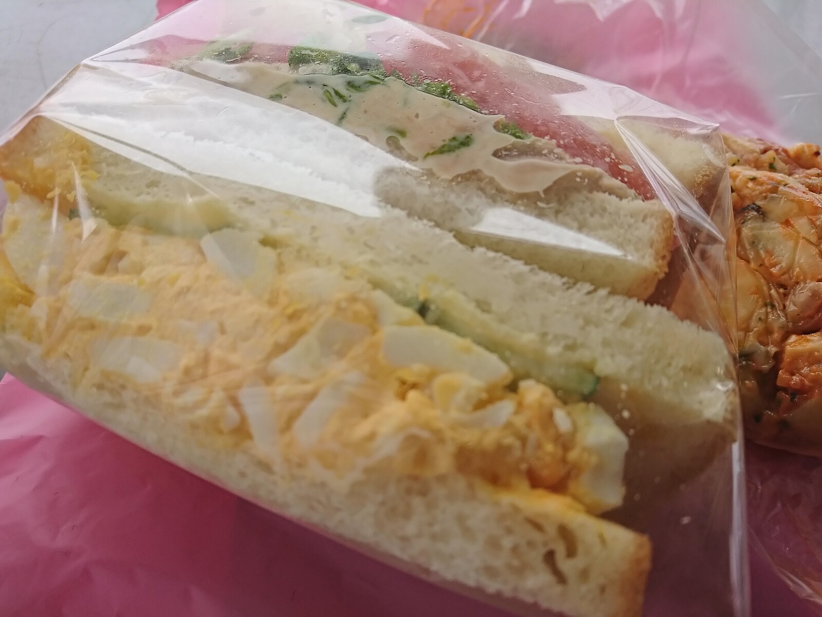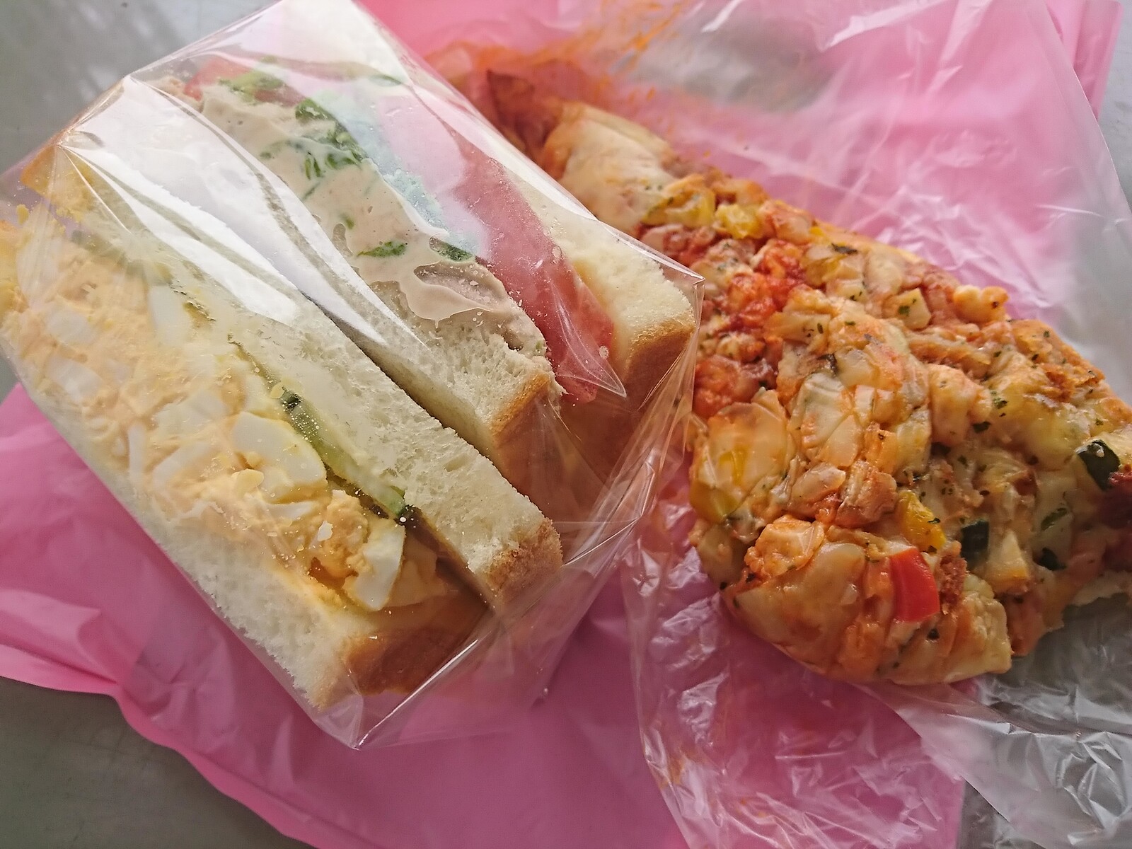 この日購入したのは、『たまごツナサンド』と『ピザパン』。いろいろと魅力的なラインナップだったけど、結局、スタンダードなものを選んでしまったのだった