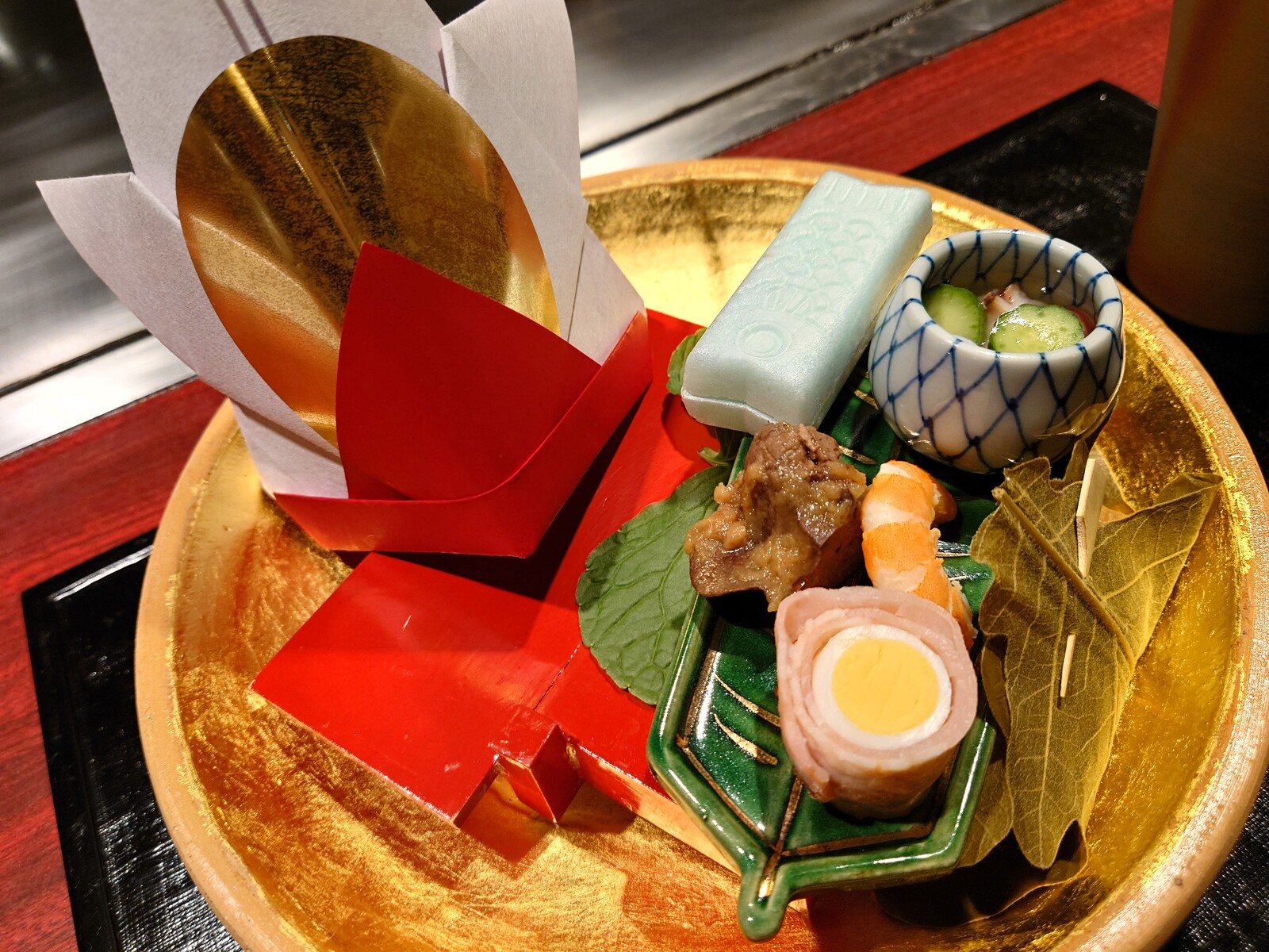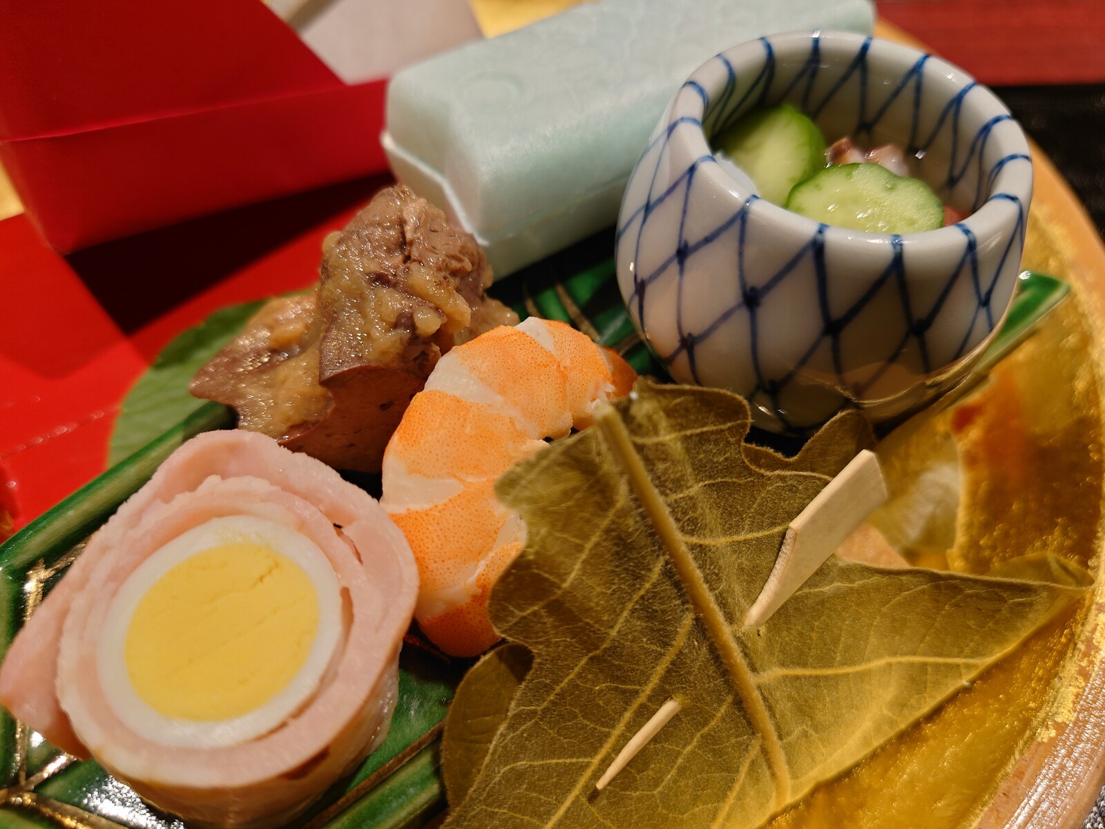 端午の節句らしく、兜の飾りをあしらったオードブル。