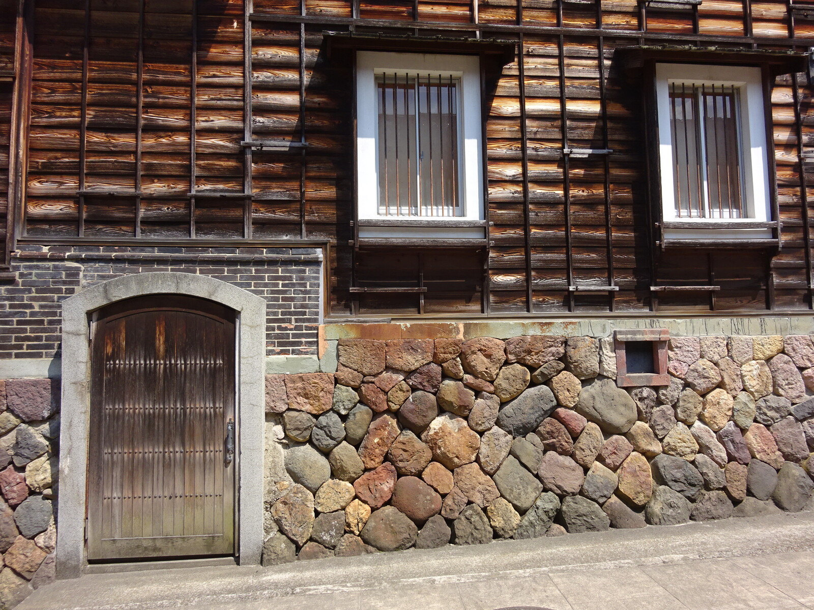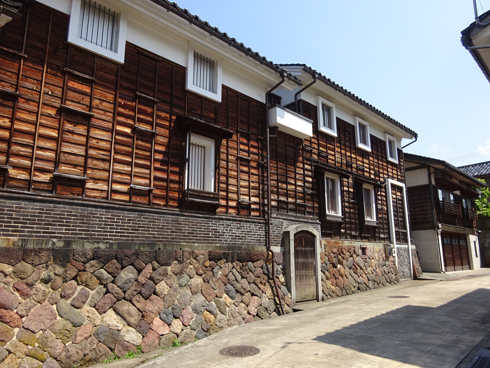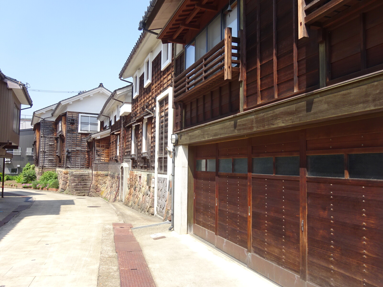 石垣と、その上に建つ古い家屋は、昭和初期よりもさらに古さを感じる造り。