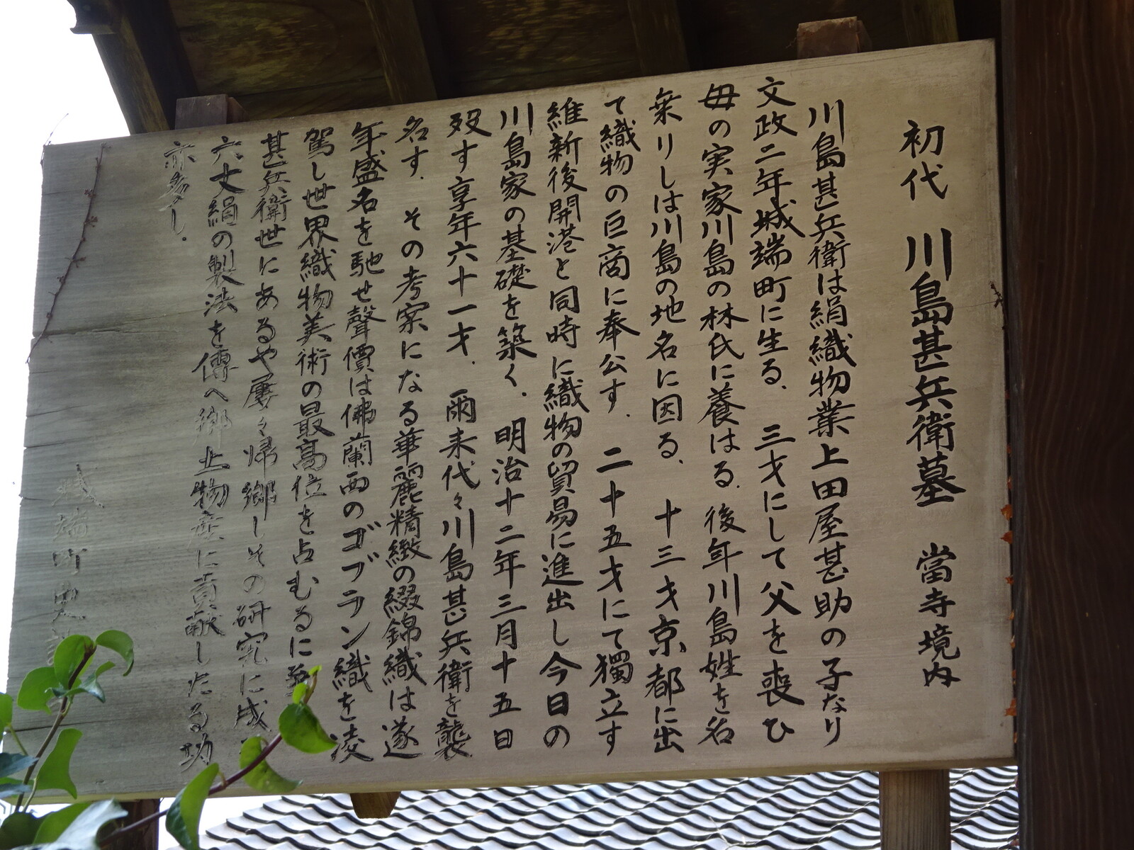 川島甚兵衛さんのお墓もあったみたいだね。宗林寺の前には、言われ書きの看板がかけてあったな。