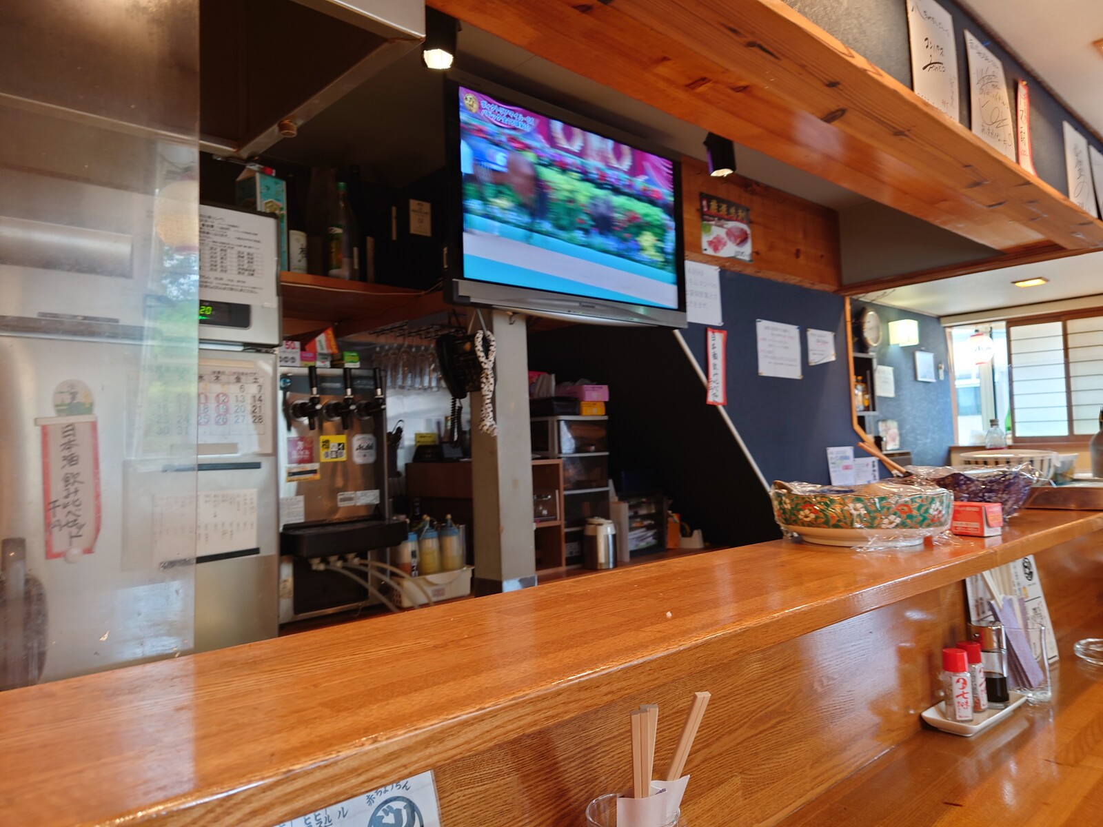 昼飲みの時間帯は、お酒も限られてるし、おばんざいも、テーブルの上に並んでるものから選ぶ感じ。