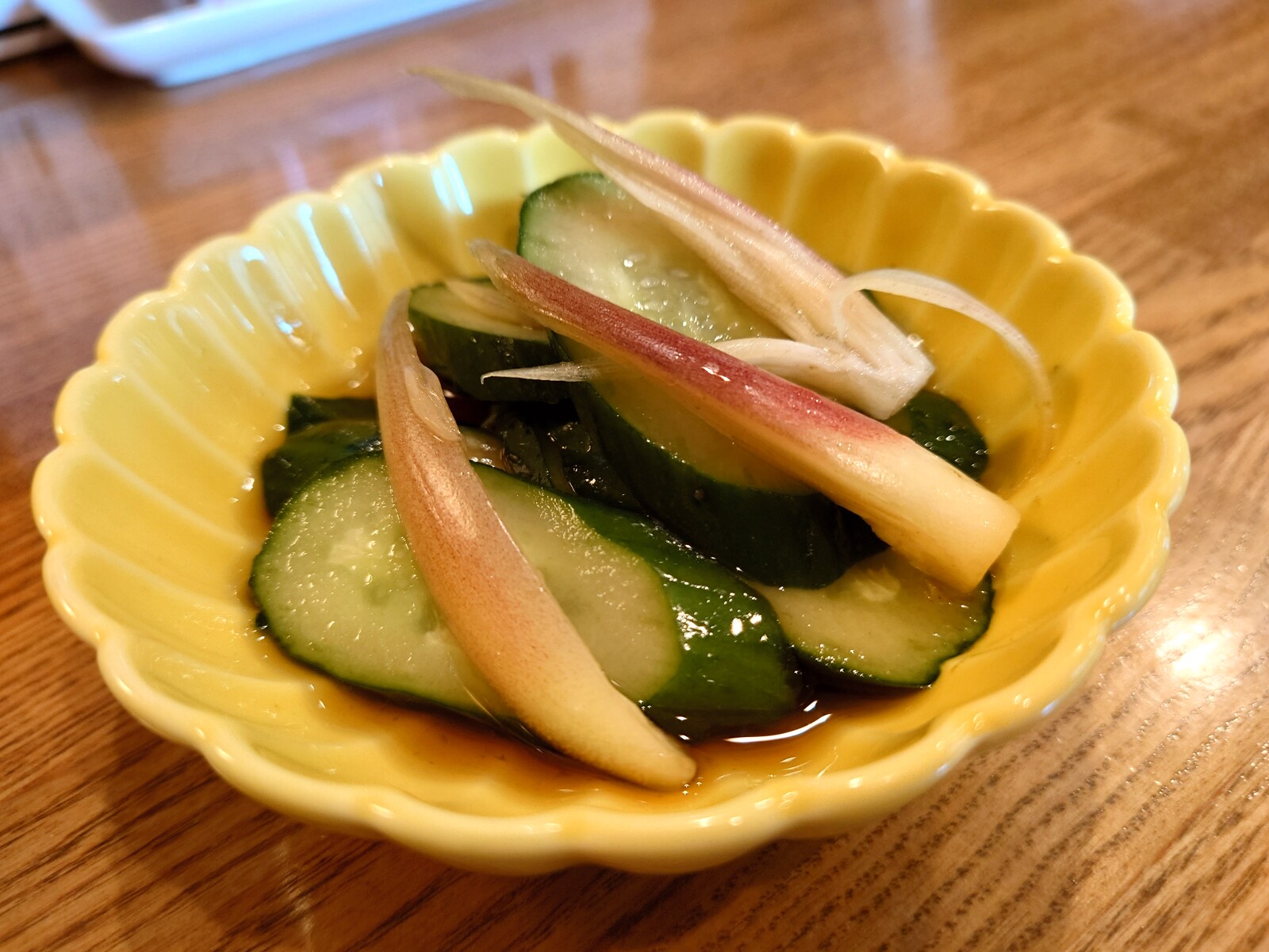そんな中、ボクのチョイスは『きゅうりとみょうがの醤油漬け』。サクッとしたきゅうりと豊かで清浄な香りのみょうがとの絶妙な取り合わせは、今の季節にぴったりなんだ。こんな素敵なおばんざいがあれば、お酒も進むというものだ。