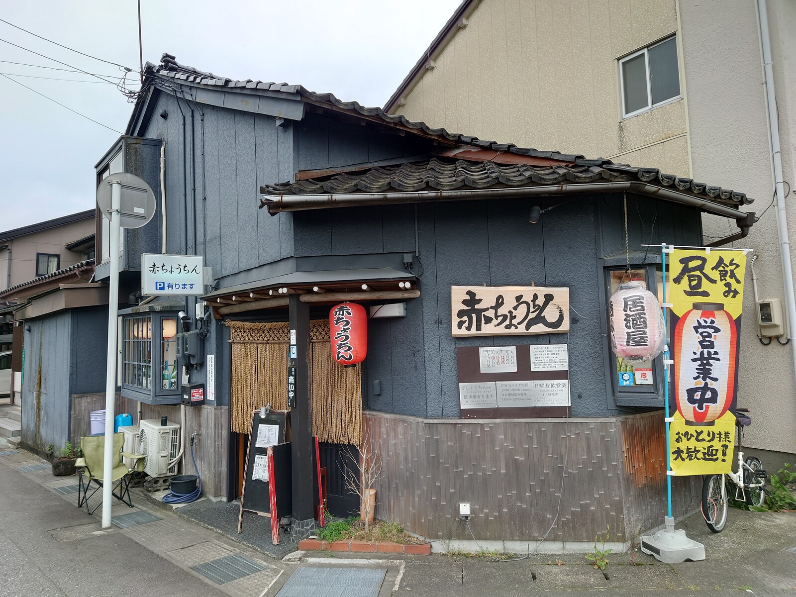 この日は、花園町界隈を散歩していたんだ。そしたら、昼飲みできます的なのぼりをあげてる店を発見。「赤ちょうちん」という、何とも素敵な名前の赤ちょうちんだったよ(笑)。散歩で乾いたのどを潤すのだ。