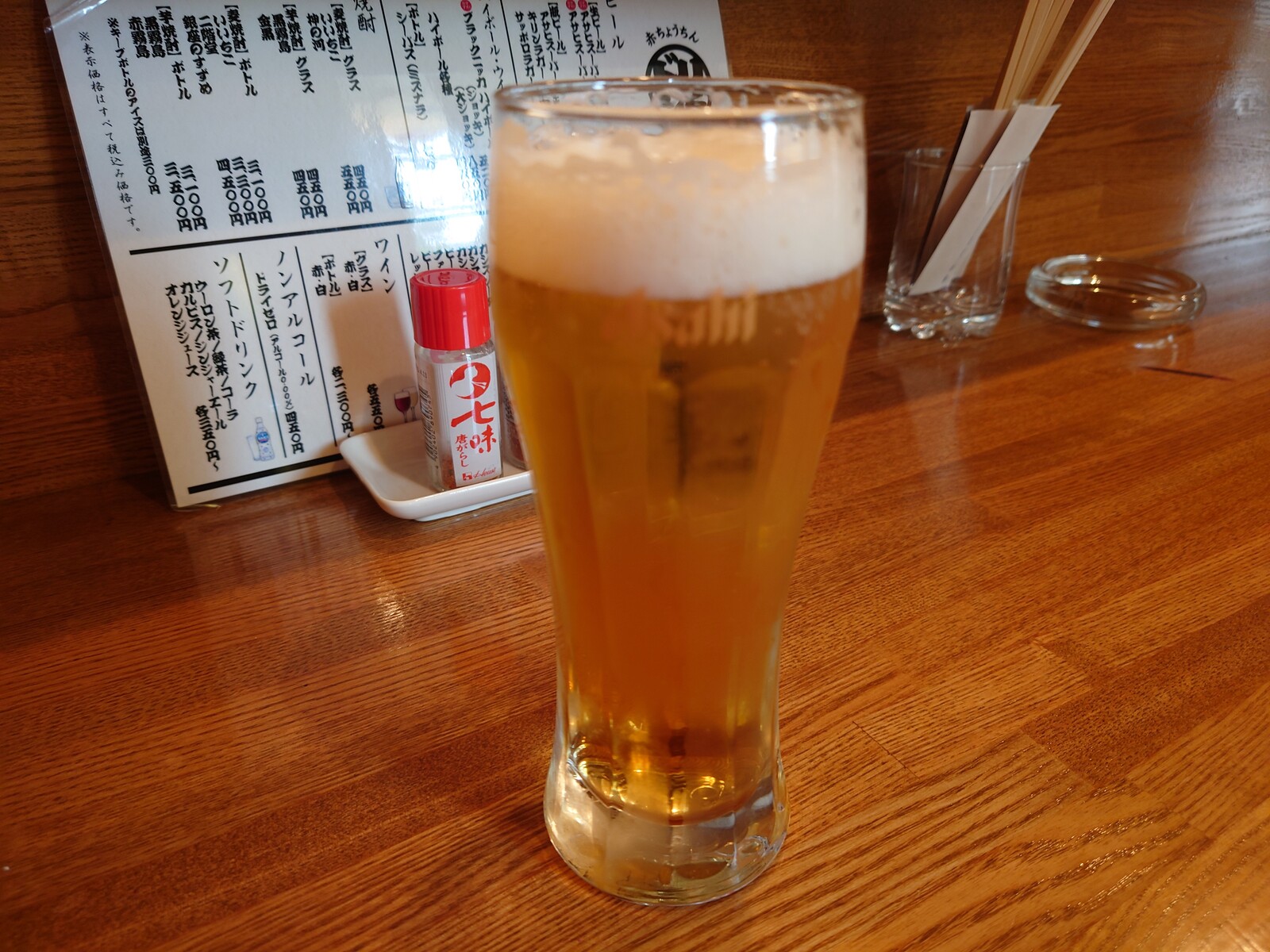 。かくして、1杯目はアサヒの生ビール。