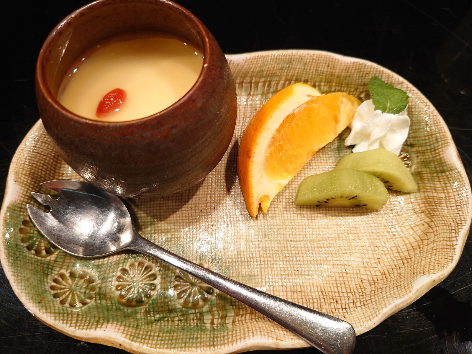 しめのデザートは、豆乳プリン。プリンは洋のものだけど、最後まで和の食材を生かしているあたりに、和食屋さんの矜持を感じるのだ。