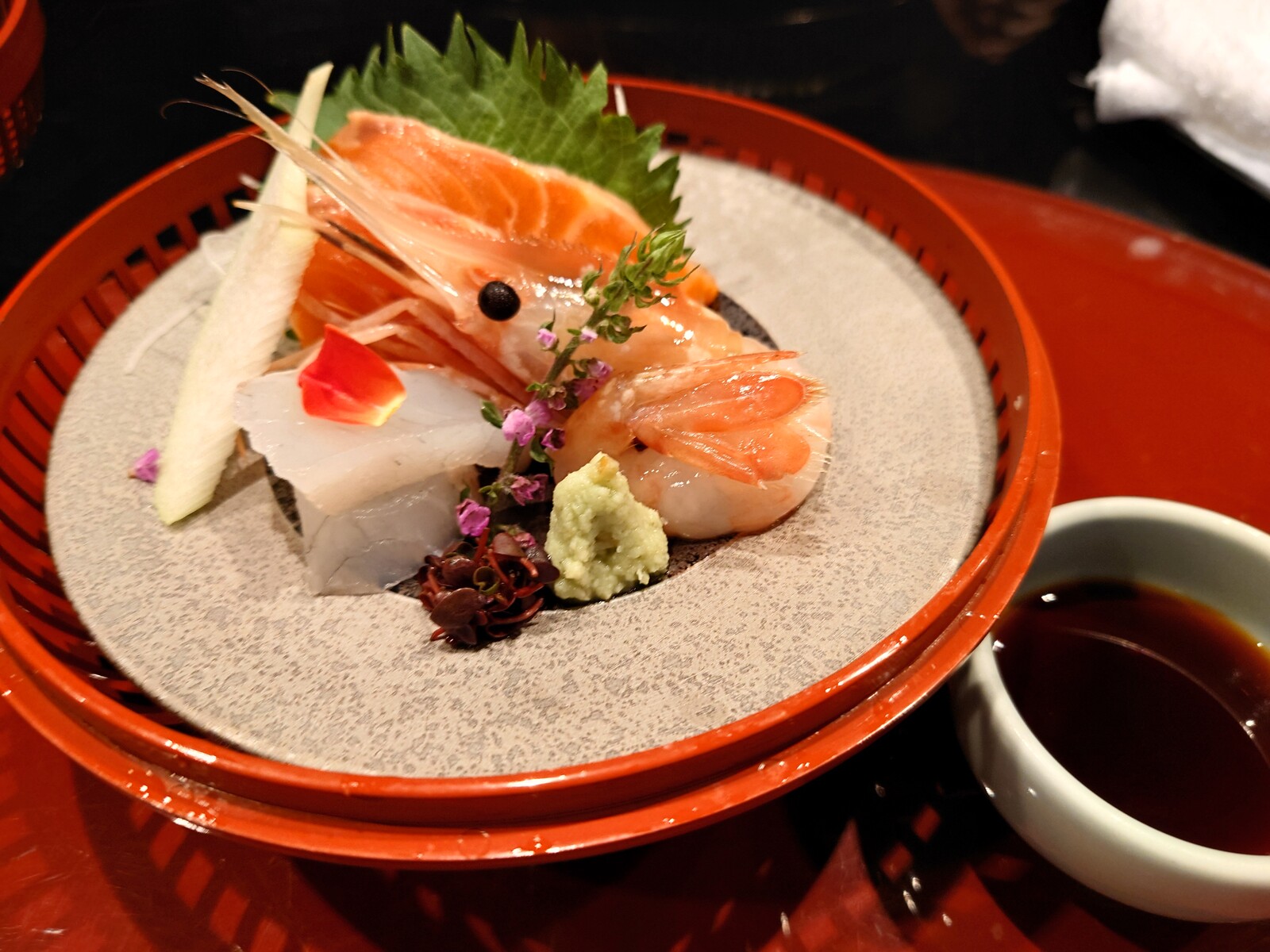 何とも素敵なお料理の数々が並んで、お客様はすっかりご満悦の様子で、よかったぁ。まずは、見事な造りに舌鼓を打ったよ。ポン。