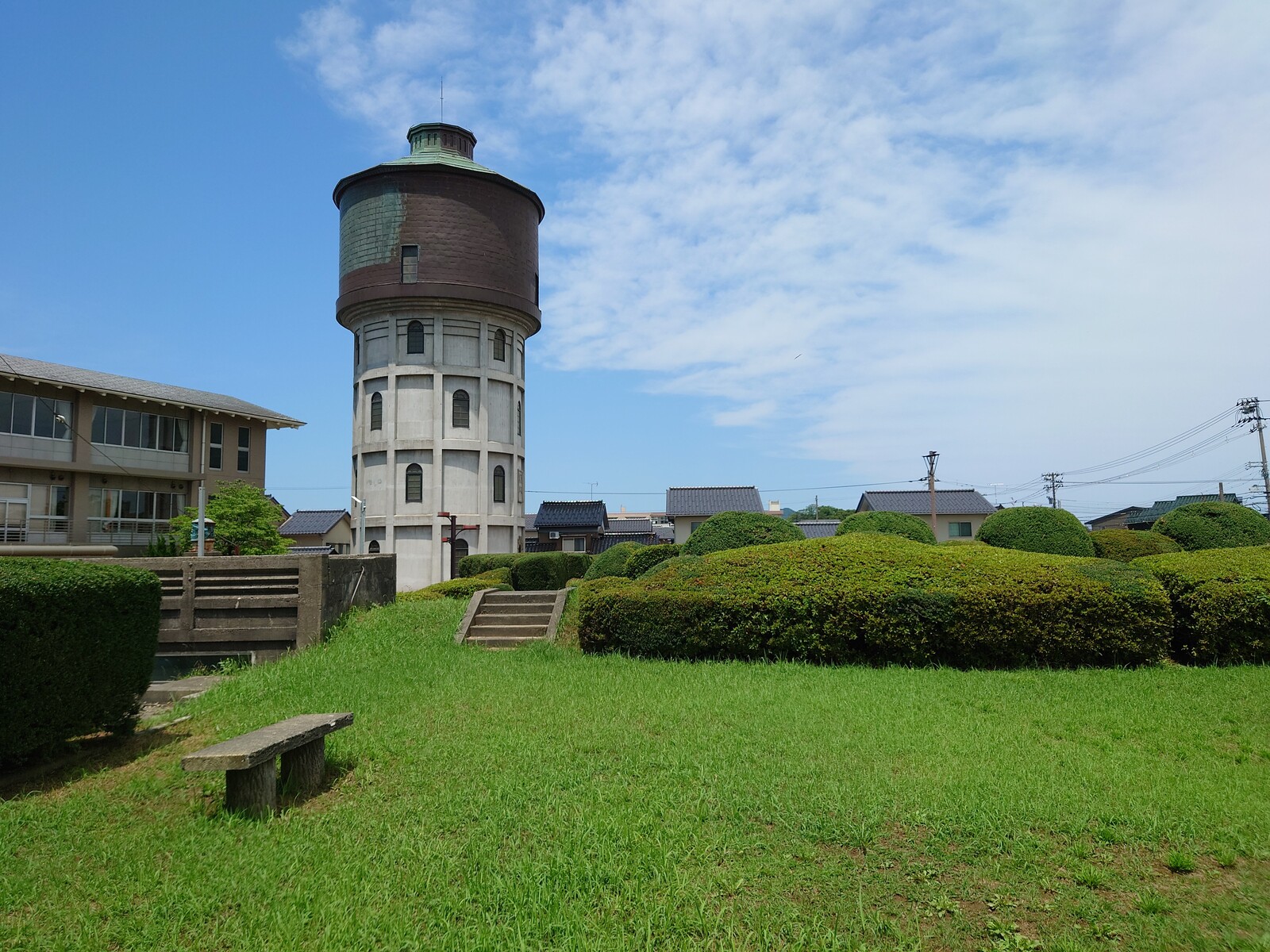 塔は、「水道公園」という門柱の奥に建っていたよ。