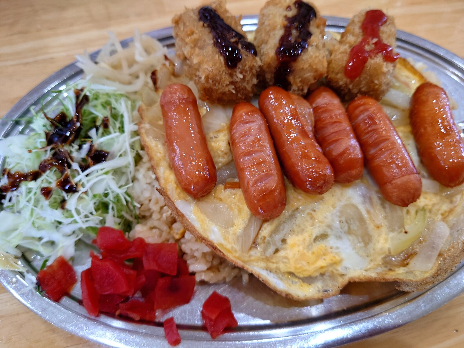 。この日の注文は、『やさたまコロッケウインナーバターライス』。一息で言えたから、上手だったねと自分で自分をほめてあげたよ(笑)。おっと、いつもはライスを小にするのに、この日は、それを言い忘れたな。