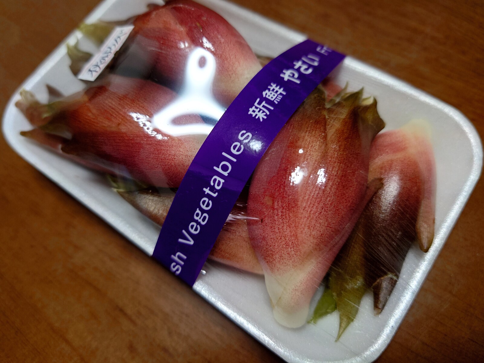 ここでは、みょうがのパックも購入。丸々とはちきれんばかりのみごとなみょうがに、思わず手が伸びたんだ。福岡町には、みょうががよくとれる産地があるんだって。