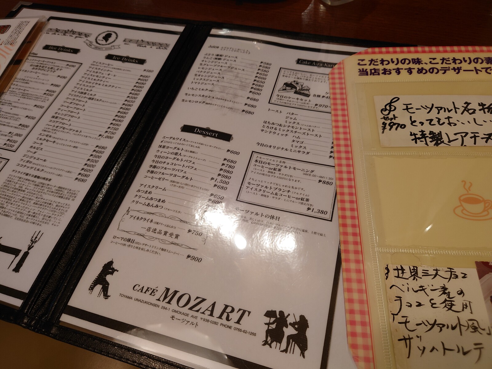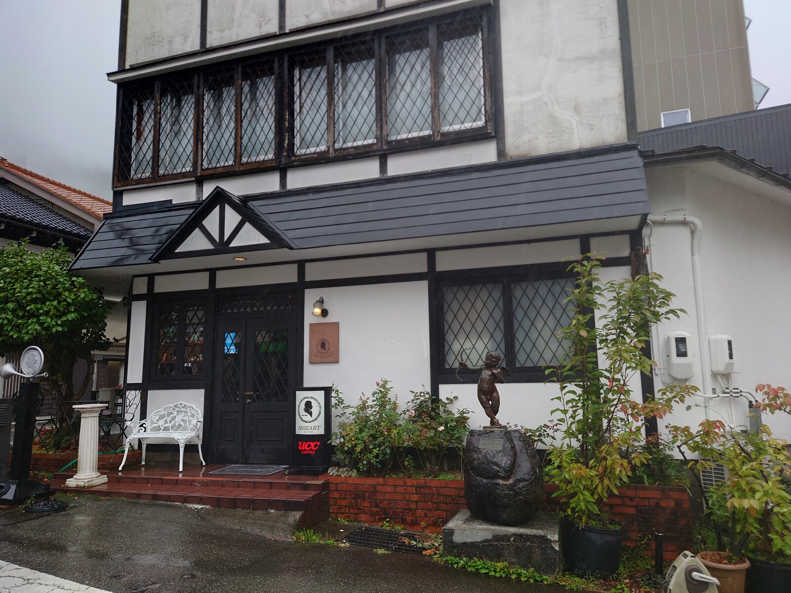 宇奈月で心地よく温泉に入り、心地よく一杯いただいたボクは、一路電車に乗って富山を目指そうと思ったんだよね。ところが、次の電車まで、1時間近くあるではないか。ここは一つ、時間待ちをしようと思って、駅近くの老舗の喫茶店「カフェモーツアルト」に寄ってみることにしたよ。