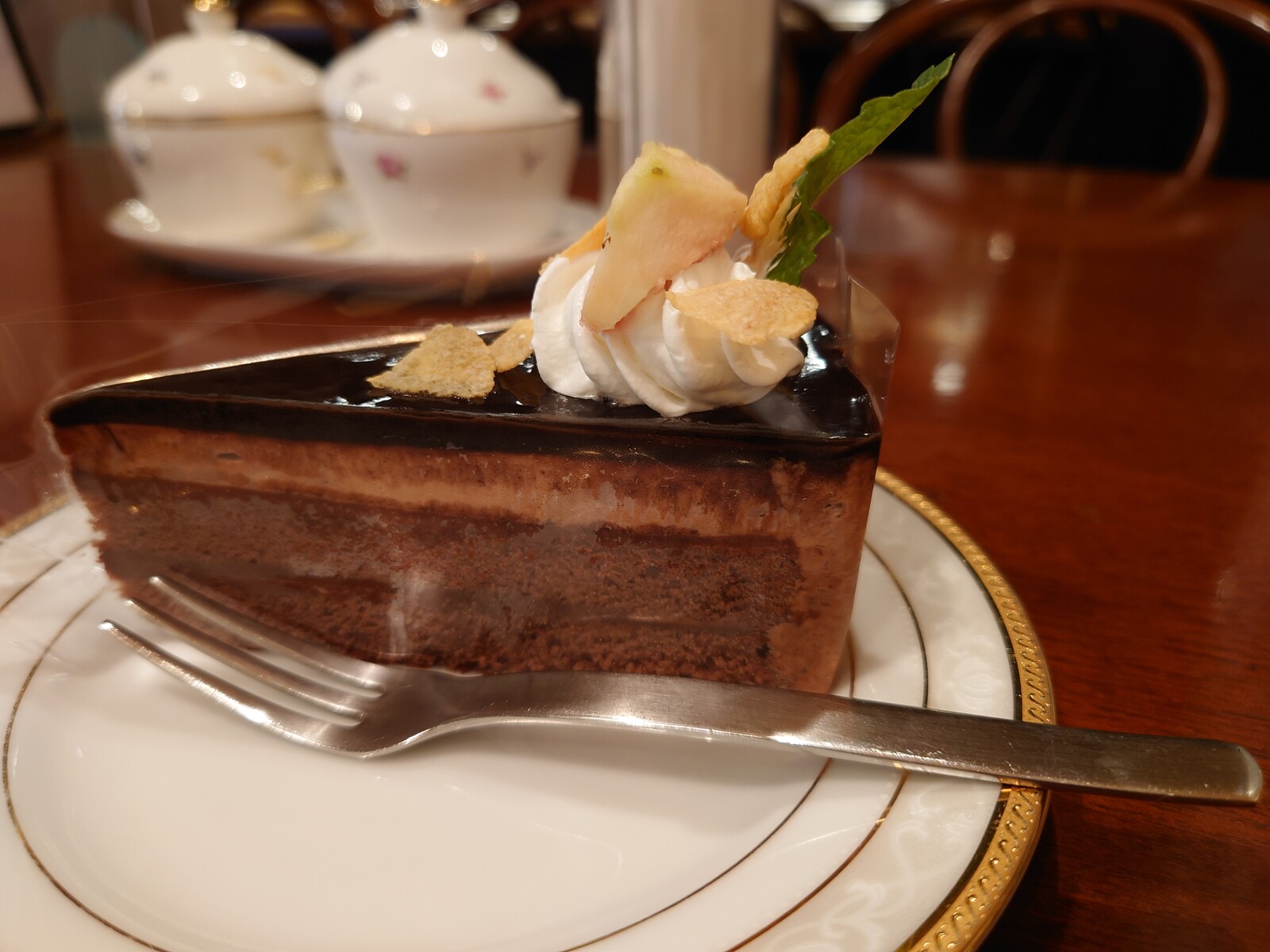 上には、生クリームと季節のいちじくものせてあって、その甘さや香りも一緒に楽しめば、さらにワンラックアップのザッハトルテになるのだった。
