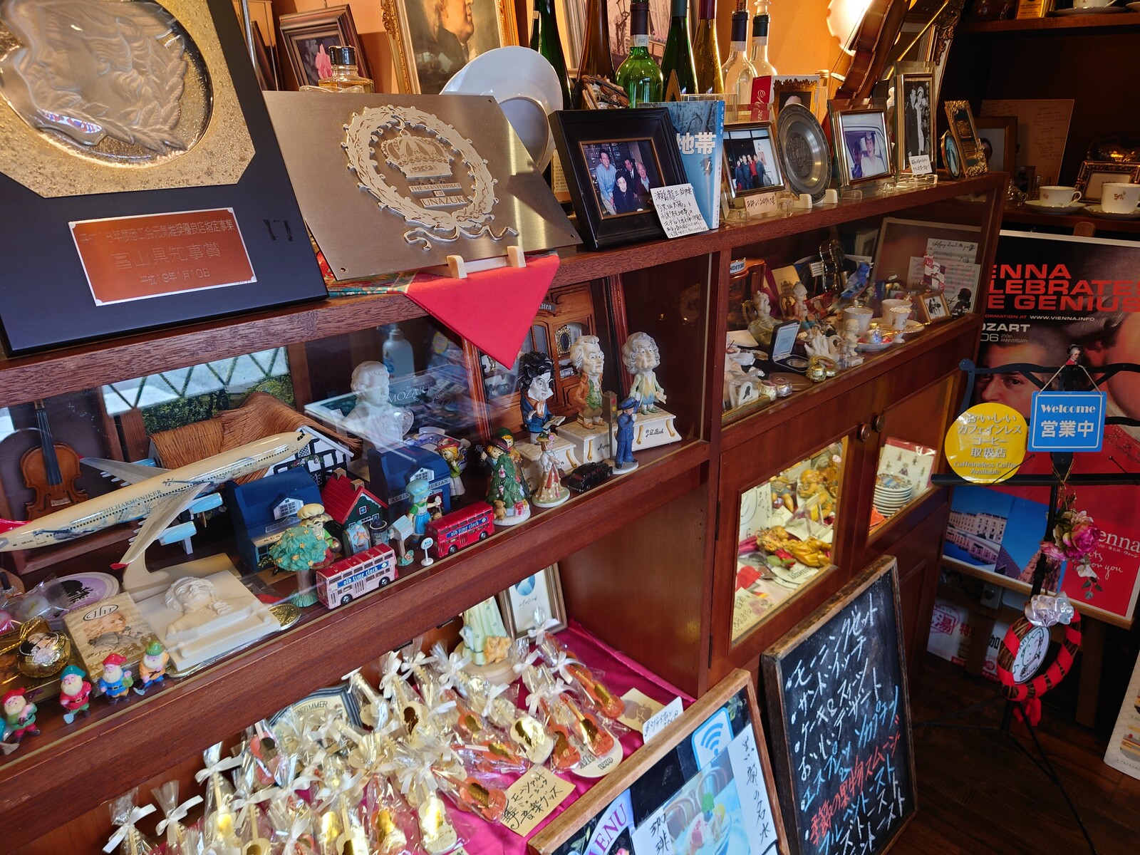 入り口の棚には、ヨーロッパ風の雑貨がぎっしり並んでいて、これがまた、店の雰囲気を醸し出しているのだ。