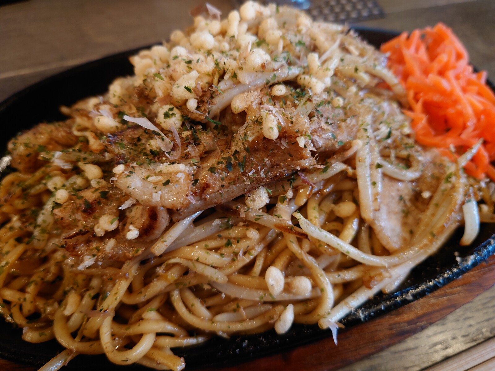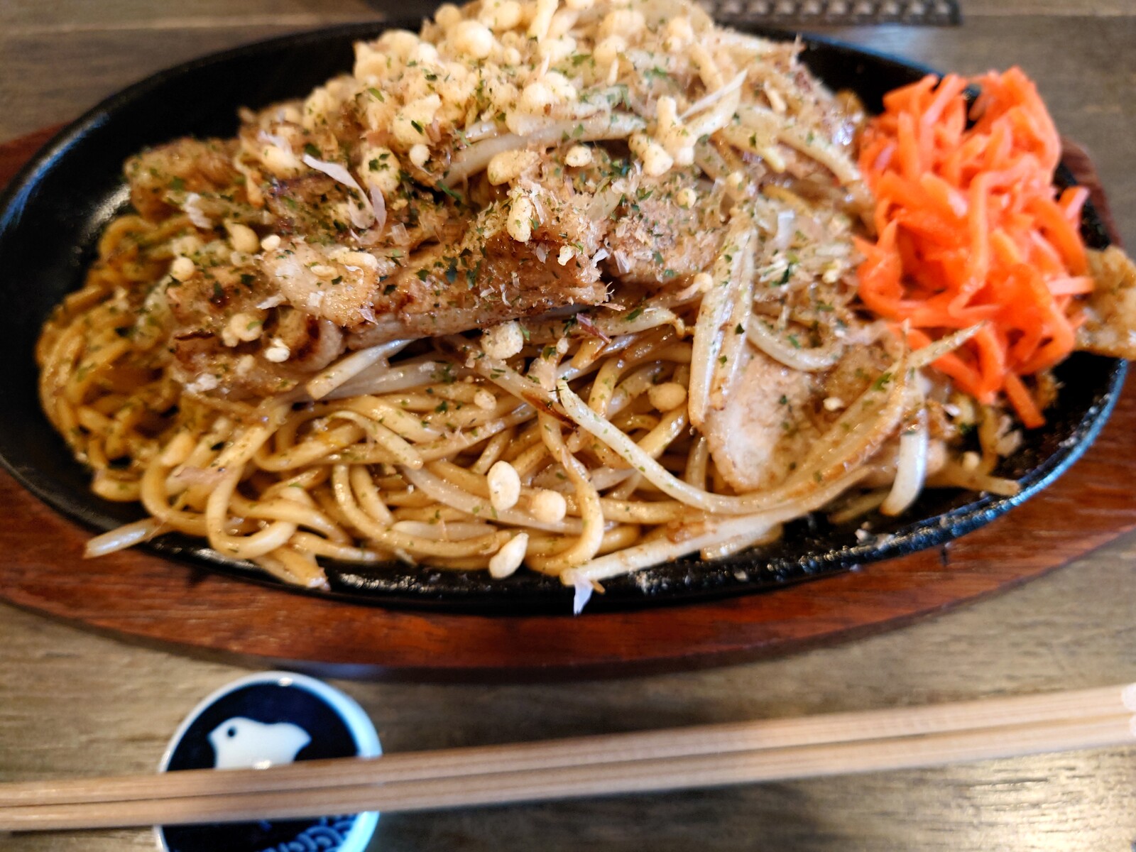 この日は、千石町通りの居酒屋「猫八」で昼飲みしてみたよ。前々から、このお店の『豚やきそば』食べて見たかったんだよね。登場したのがこちら。