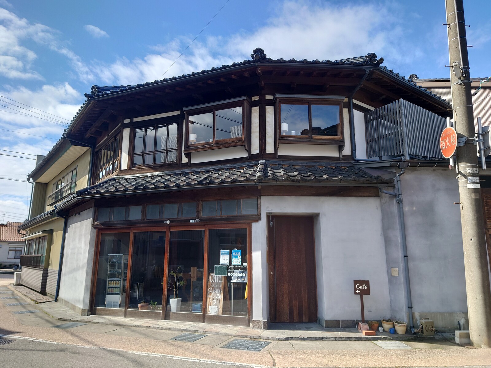 この日は、とても爽やかな天気の日だったんだ。こんな日には、ちょっと足を延ばしたいではないか。かくして、訪れたのはこちら。新湊内川にある人気のカフェ「uchikawa六角堂」だよ。見よ、この見事なたたずまい。まるで映画の一場面だよね。
