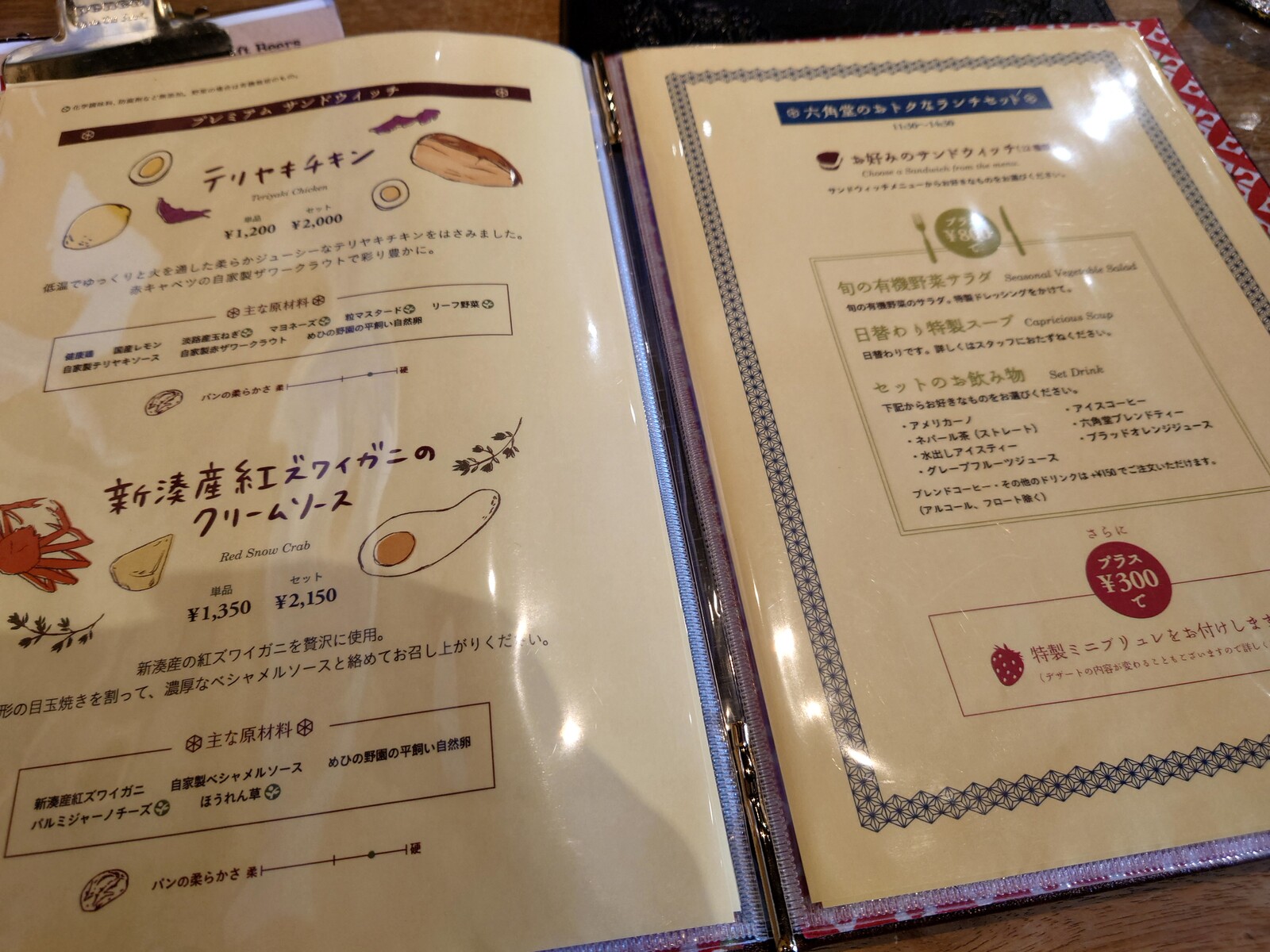 この店では、サンドイッチやカレーが人気なのだとか。この日は、店名が入った『六角堂ルーベンサンド』を頼んでみたよ。自家製コンビーフとザワークラウトを具にしたサンドイッチ。一緒に、クラフトビールもいただいたのだ。