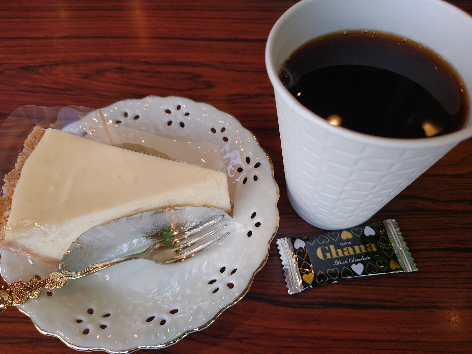口の中でふんわり溶けていく、そのふわふわ加減はレアチーズにあるまじきふわふわ感。クリームチーズの香り豊かで、程よい甘さもバランスよい、見事なチーズケーキだったよ。こんなチーズケーキを毎日食べられたら、幸せだよね。いやホント。