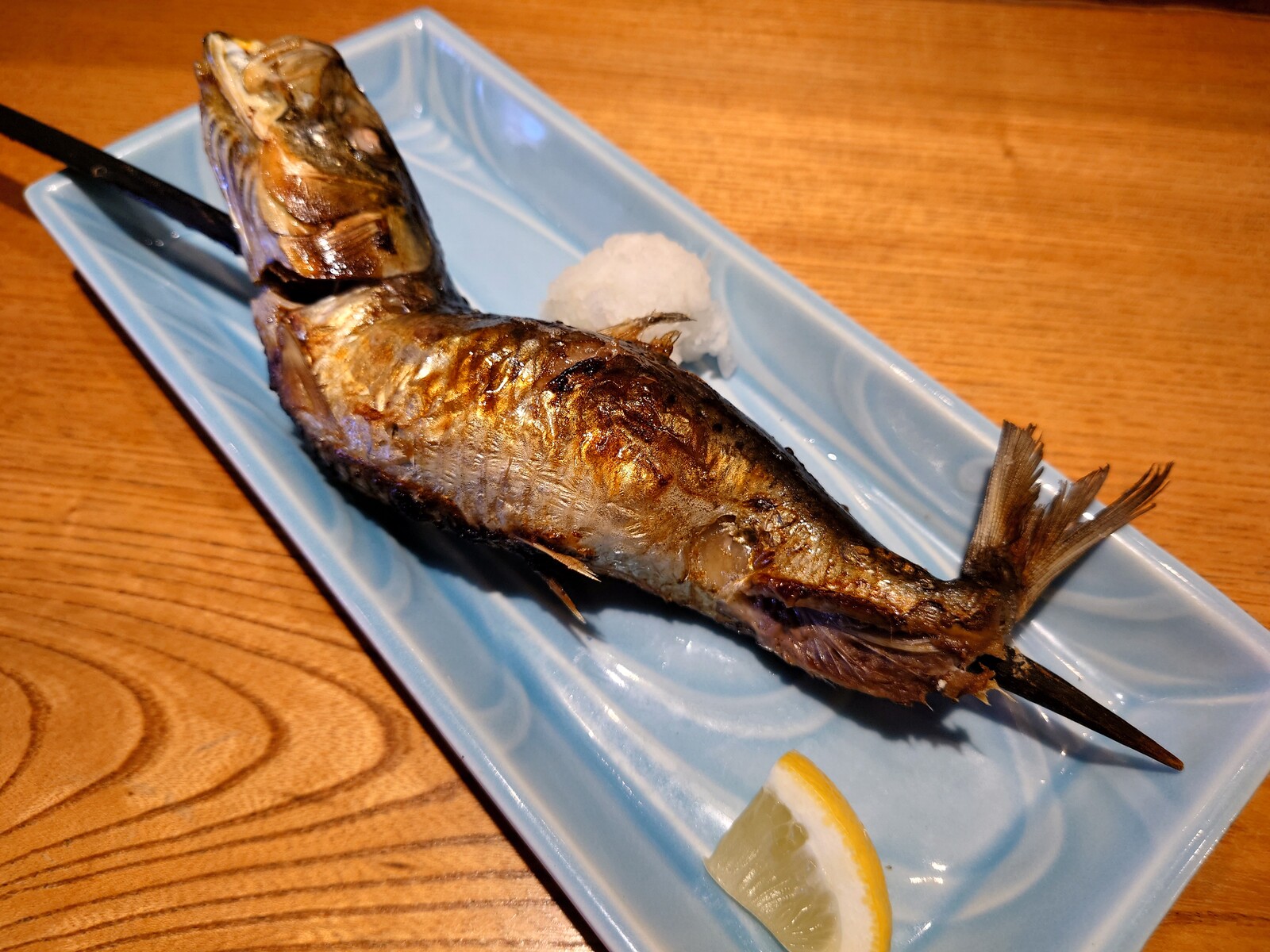 かくして焼きあがったのが、お店の人からすすめられた『いわしの炭火焼き』。かなり大ぶりのいわしは、実に新鮮で、はらわたを食べても、ほとんど苦味を感じないんだ。ひれを外しながらかぶりつけば、あっという間に骨だけになってしまったよ。