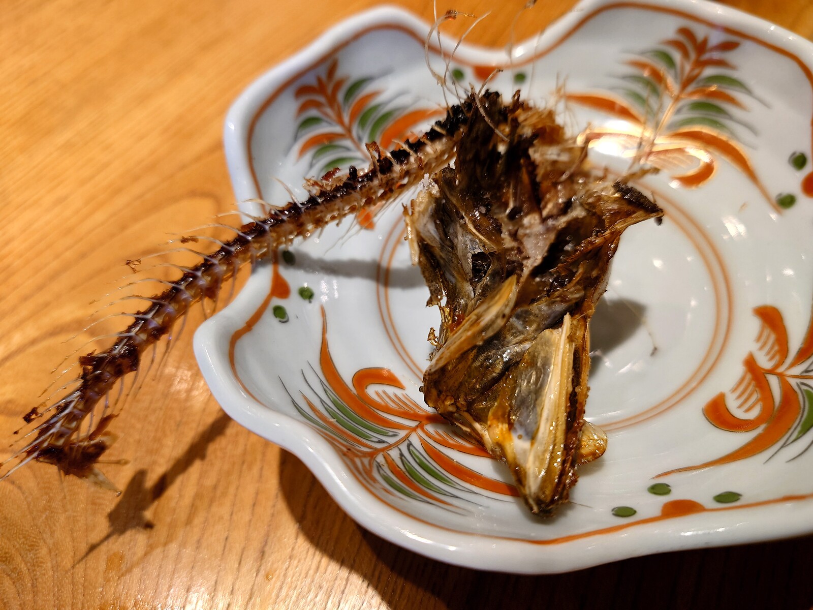 何と、骨を揚げて、『骨せんべい』にしてくれたではないか。かくして、頭のてっぺんからしっぽの先までいただいてしまったよ。