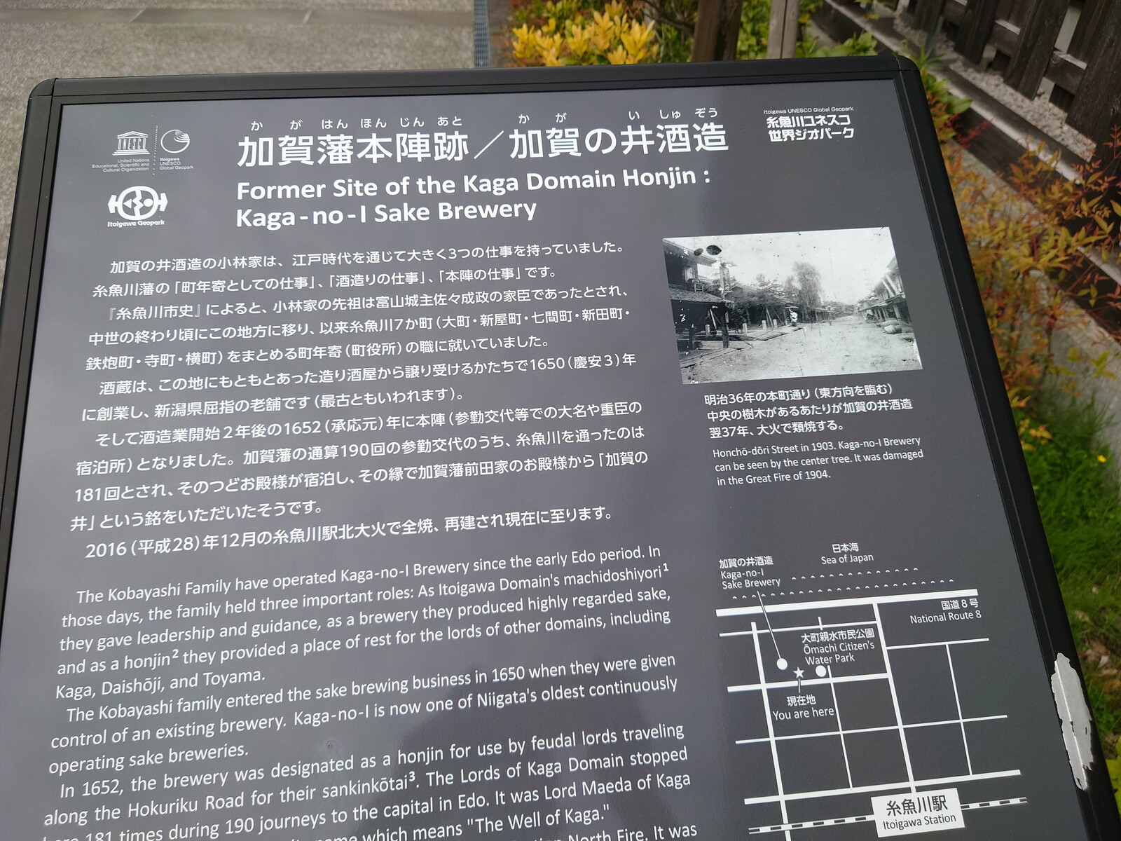 糸魚川を代表する造り酒屋「加賀の井」が、2016年末の大火で全焼してしまった話は、記憶に残っていたんだ。蔵が再建されたとは聞いていたけど、どんな具合になってるかにも興味があって、今回、糸魚川を訪れてみることにしたんだ。