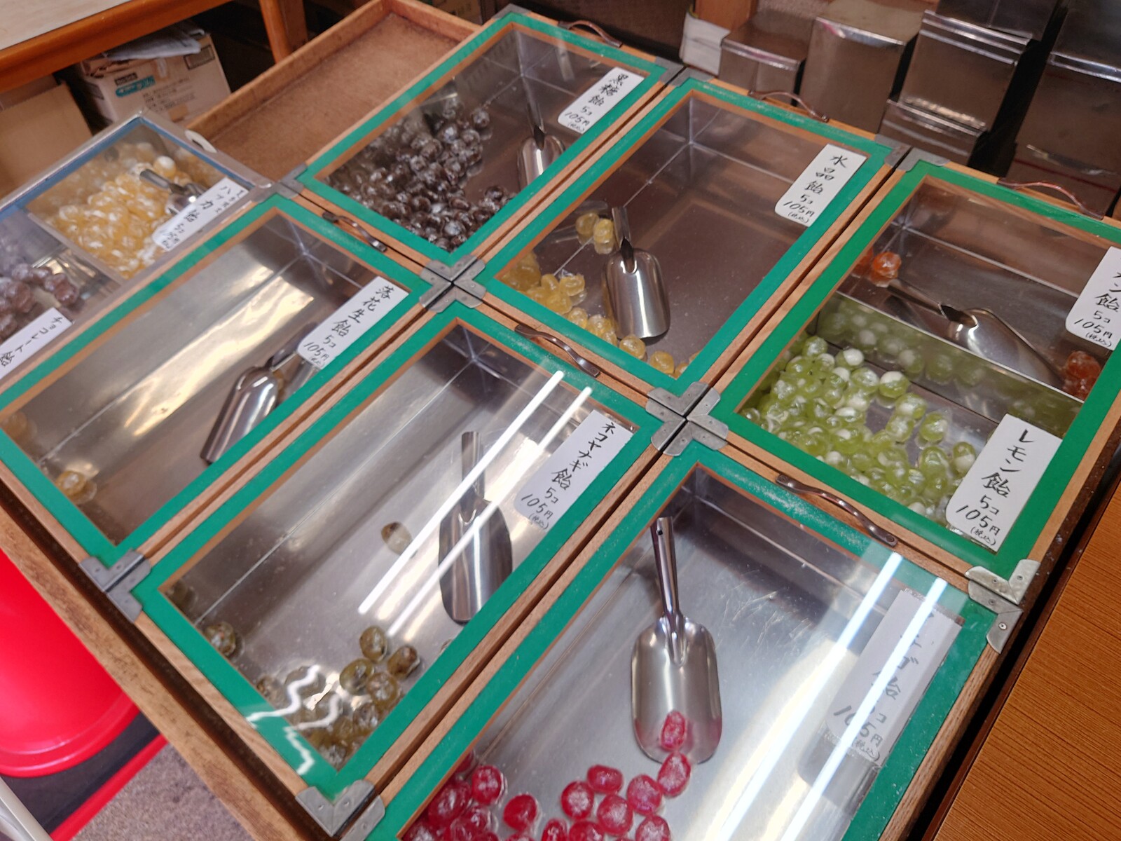 そしたら、糸魚川の名物『マキノ式飴』の製造店「牧野製飴店」があるではないか。中をのぞいてみると、飴玉が美味しそうに並んでいたよ。