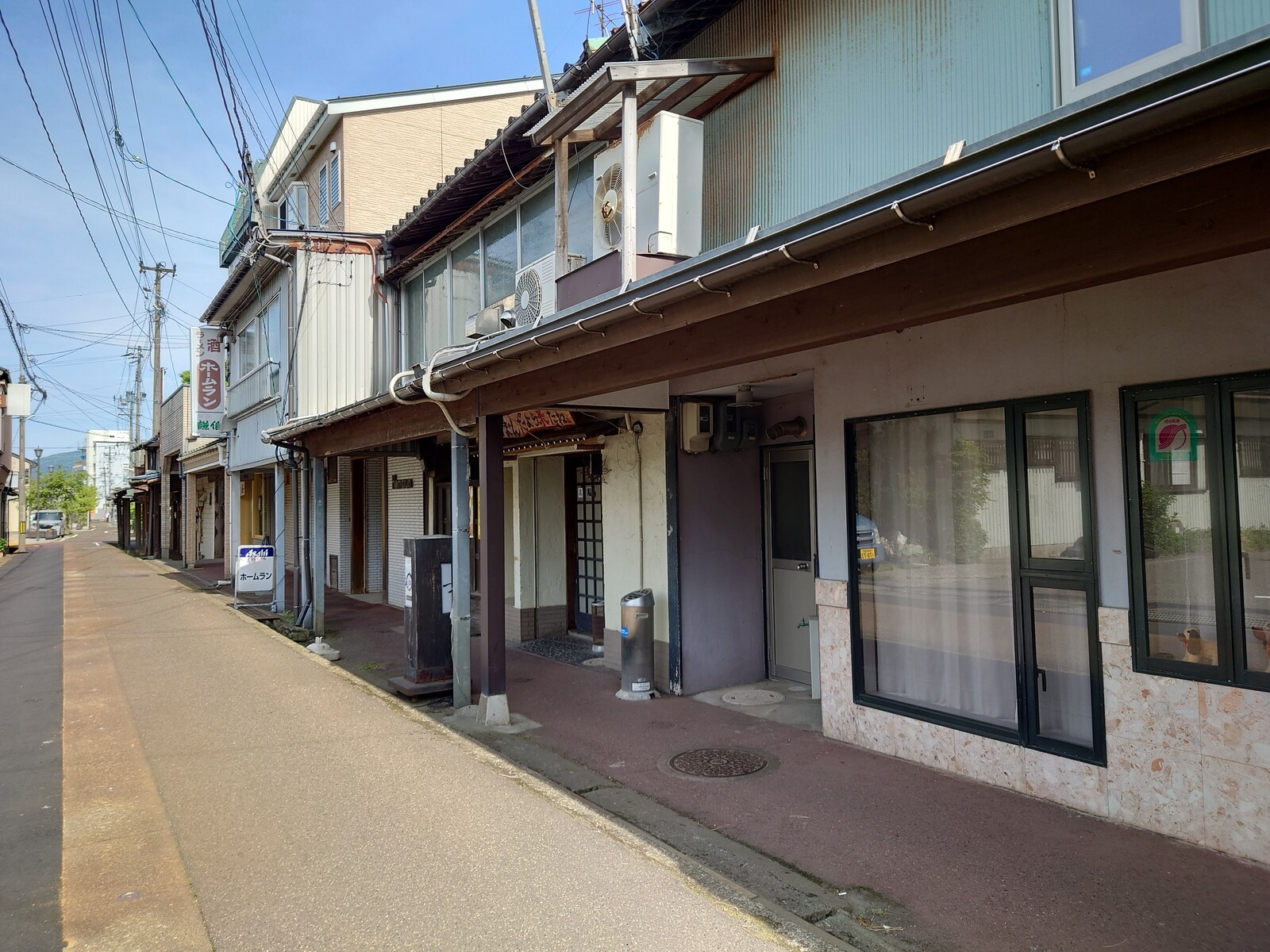 糸魚川の街は、少し小さな通りに入っても、お店の前は、ちゃんとがんぎになってるんだよね。清酒『謙信』の造り酒屋「池田屋酒造」の向かいに入っていく道がいい感じだったから、歩いてみたんだ。