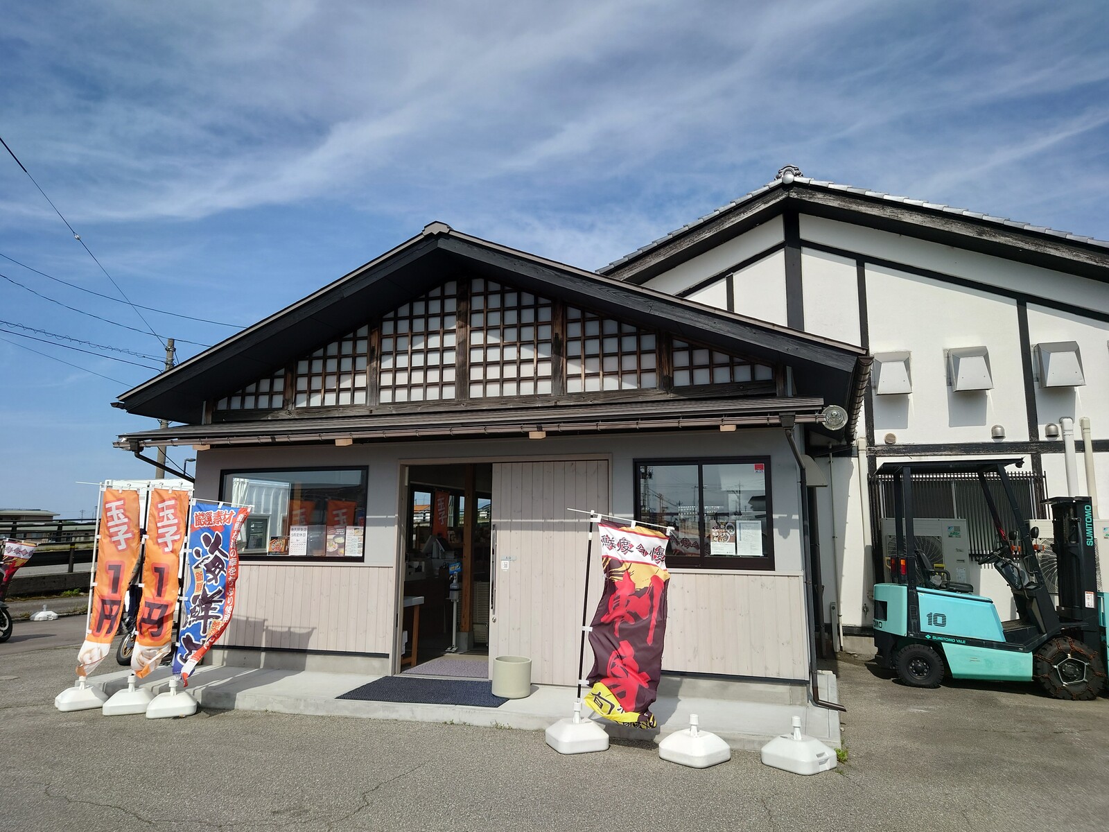 お店は、白を基調とした明るい感じ。この日は、県外ナンバーもたくさん停まっていて、富山のいいところを味わっていたんだ。
