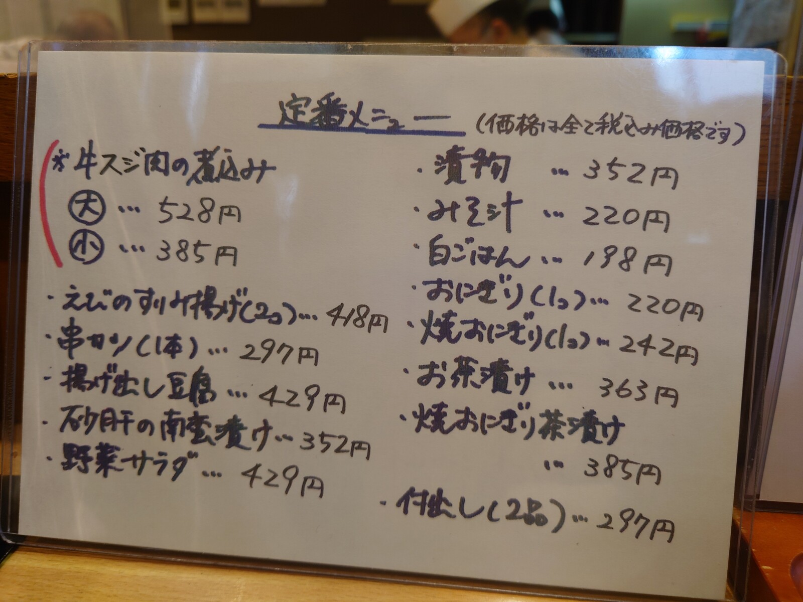 そして、看板メニューの『牛スジ肉の煮込み』。これを食べたくて、この店に来ているといっても過言ではない、絶品メニューだよ。小とはいえ、昔より若干量が少なめになってるのは、時代だからやむを得ないかも。