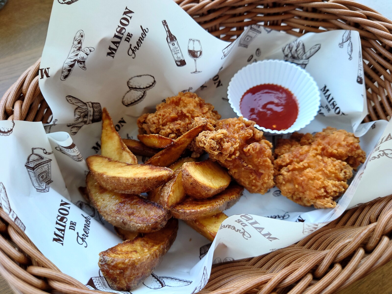ビールに一品おつまみを付けたセットがあったから、「フライドポテト&チキン」を頼んだよ。唐揚げではなくて、ちゃんとフライドチキン。フライドポテトもほくほくしていて、ビールに実にぴったり合うのだったな。なかなかのクオリティで感激したよ。