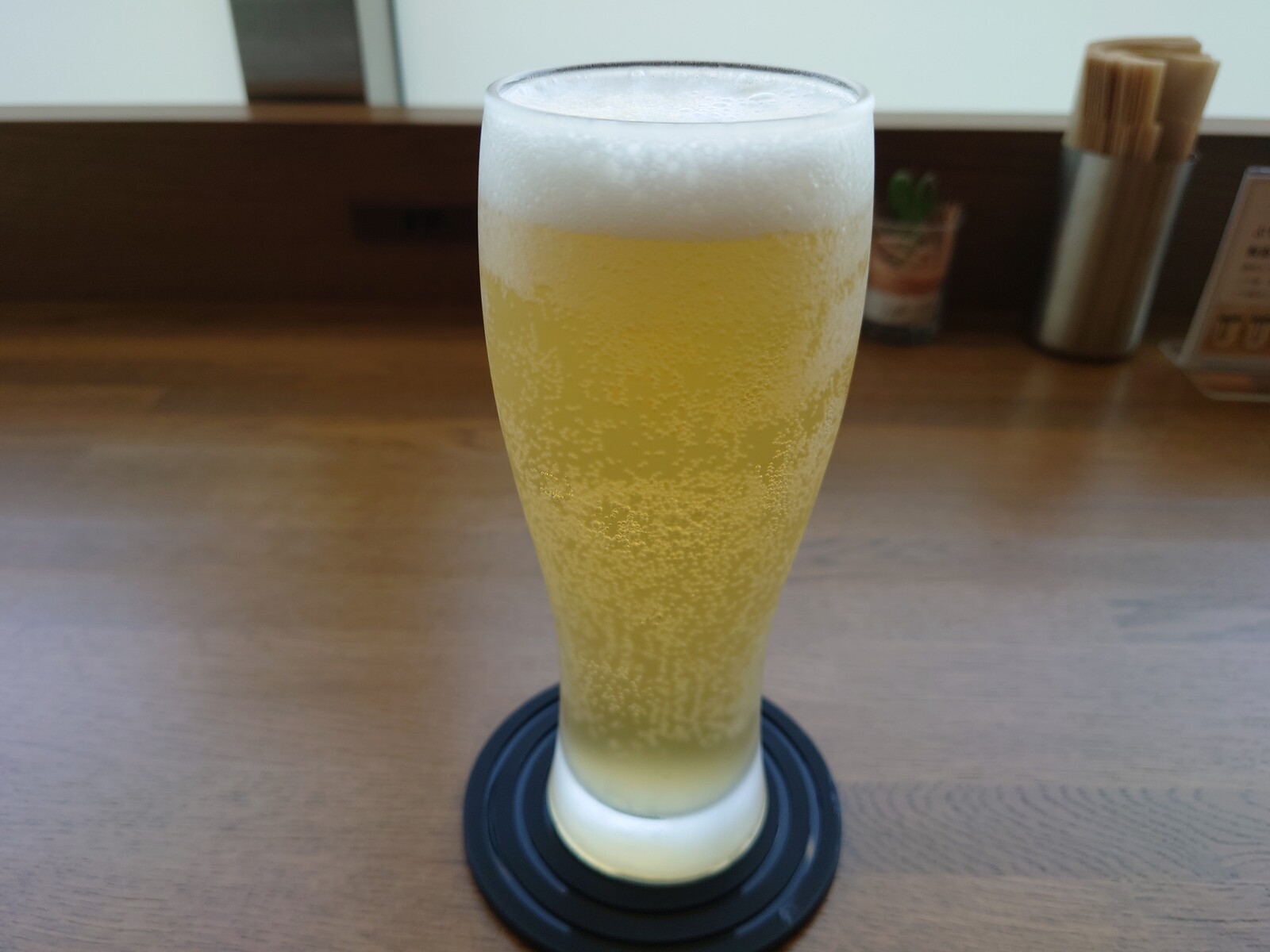 窓際のカウンター席に座って、青空を眺めながらいただく昼ビール。う〜ん、なんと贅沢な時間なのだろう。