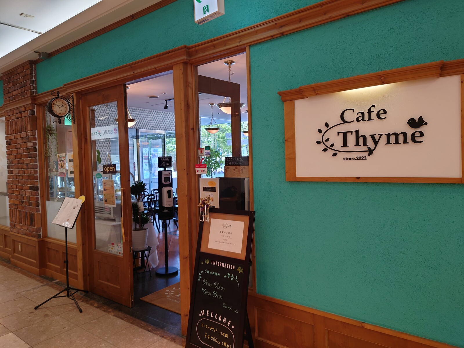 この日は、オーバードホールに隣接したビル、アーバンプレイスの1階にある「カフェタイム」で、一休みしてみたよ。「カフェタイム」は英語で「Cafe Thyme」と書くんだって。Thyme(タイム)とは、ハーブの一種。肉料理や腸詰に使われる調味料の名前だよ。