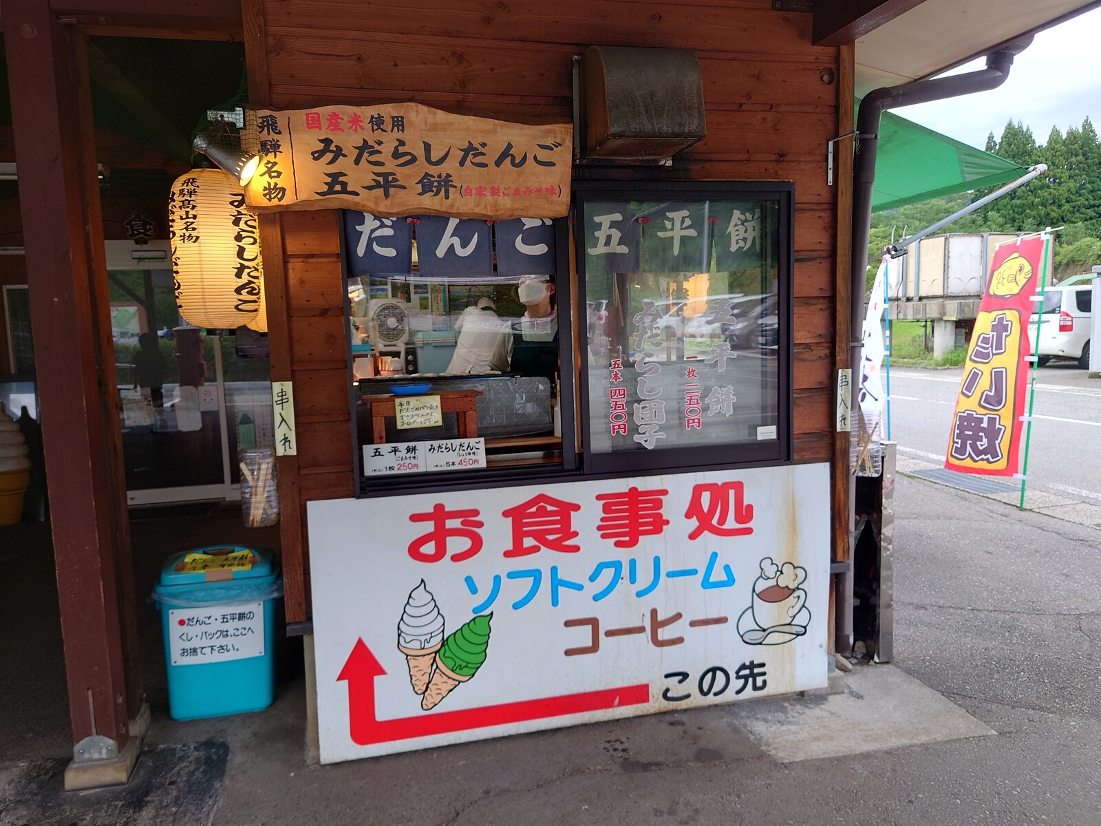 ここでは、『みたらしだんご』も味わえるのだ。高山まで行かなくても、ここまで来れば、飛騨の味を十分たのしむことができるよ。