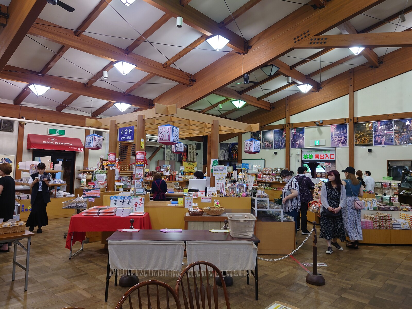 お土産品にも、飛騨地方のハムがあったり、けいちゃん焼きの冷凍があったりと、飛騨地方の名産をいろいろと買い求めることができるんだ。