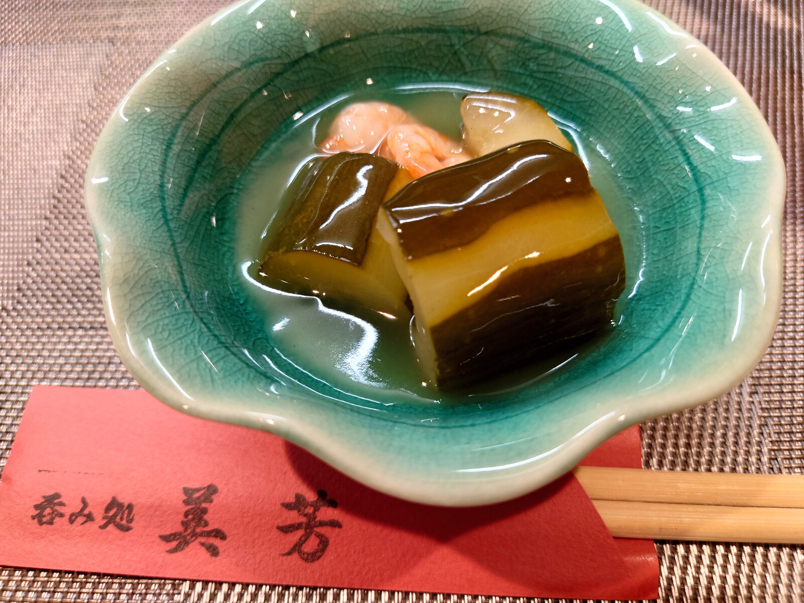 お通しも、夏らしい一品。優しい出汁の味わいが、絶品だったんだ。