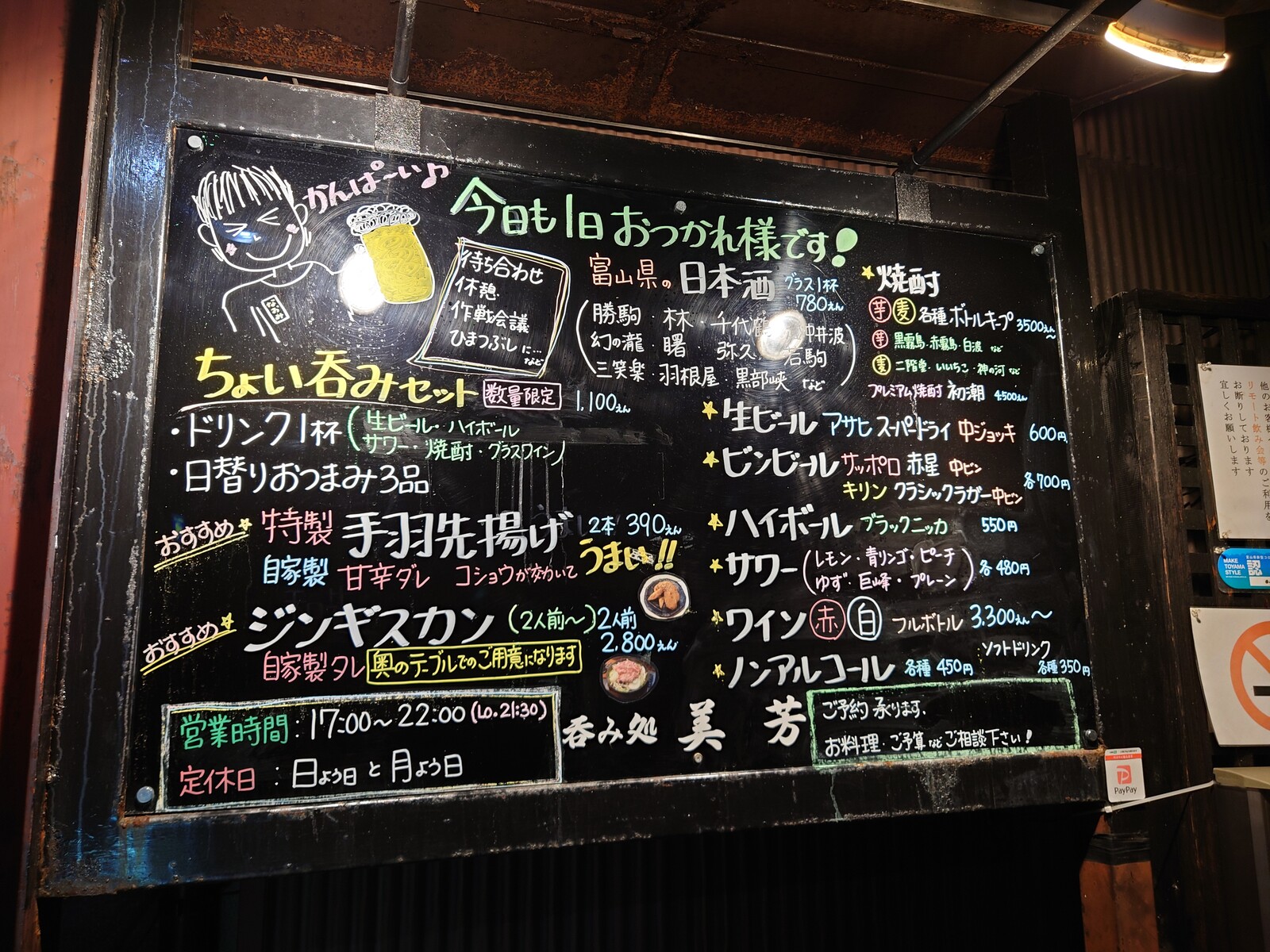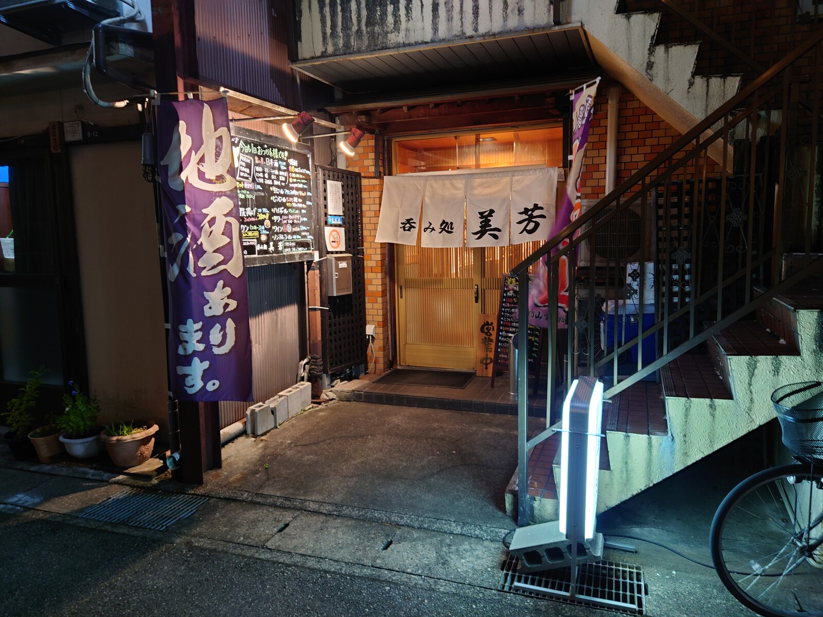 この日は、日枝神社の近く、西町の、かつては居酒屋やスナックがぎっしり並んで賑わってた通り沿いに、今でも元気に営業している居酒屋「呑み処 美芳」に寄り道してみたよ。表の構えが、とても「元気」なんだよね。