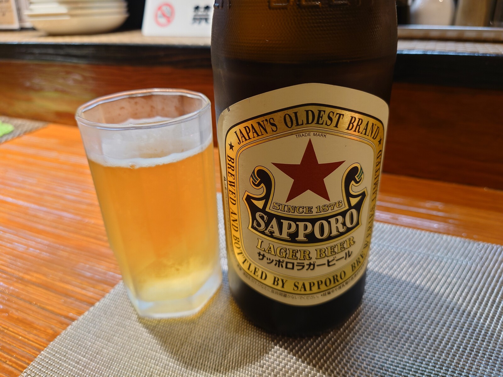 こんな素敵なおつまみがあるなら、もう1杯飲んでいきたいではないか。おかわりは、サッポロの赤星。